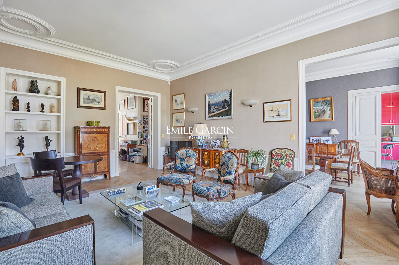 Exclusively - Saint Germain des Prés, located on the 4th floor of a remarkable building served by elevator, in a perfectly maintained condominium, this apartment with its unobstructed view of 132.04m² Loi Carrez embodies the perfect balance between authenticity of the old and contemporary functionality. From the entrance, the tone is set: generous volumes, ceiling height of 3.30 m, period parquet, preserved moldings, and a double exposure bathing each room in sunlight. The apartment consists of a large elegant living room with its large balcony of 8.32 m², a large dining room and a separate eat-in kitchen complete the living space. Night side, two bedrooms with dressing rooms, one of which is air-conditioned, a bathroom and a shower room. The plan was carried out and optimized by an architect. The whole is completed by a large cellar, a bicycle storage room. This apartment embodies the spirit of Saint-Germain-des-Prés: a place of life, culture, timeless elegance. Rare location. Condominiums of 82 units (No proceedings in progress). Annual expenses : 7080 euros.