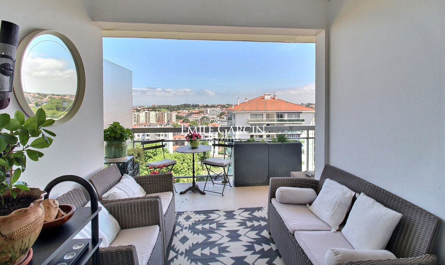 Located in a secure condominium equipped with an elevator, this exceptional apartment stands out for its fluid layout, generous-sized rooms and spectacular views of the seafront and Biarritz golf course. A spacious entry hall leads to a large, light-filled living room with large windows. The living room and dining room are open plan, creating a truly welcoming space. The modern kitchen blends in perfectly with the rest of the apartment: fully fitted and equipped, it is designed as a sociable space and offers direct access to a large terrace with dining facilities, perfect for al fresco meals overlooking the seafront. The master suite features a dressing room and separate bathroom. Additional facilities include a utility room and a separate WC. This is a unique apartment, where residents also enjoy the use of a shared area with a communal lounge, ideal for socialising, relaxing or working. The condominium also houses a convenience store for everyday purchases. The property is sold with a lock-up storage box directly served via the elevator. Unmissable: book your viewing today.