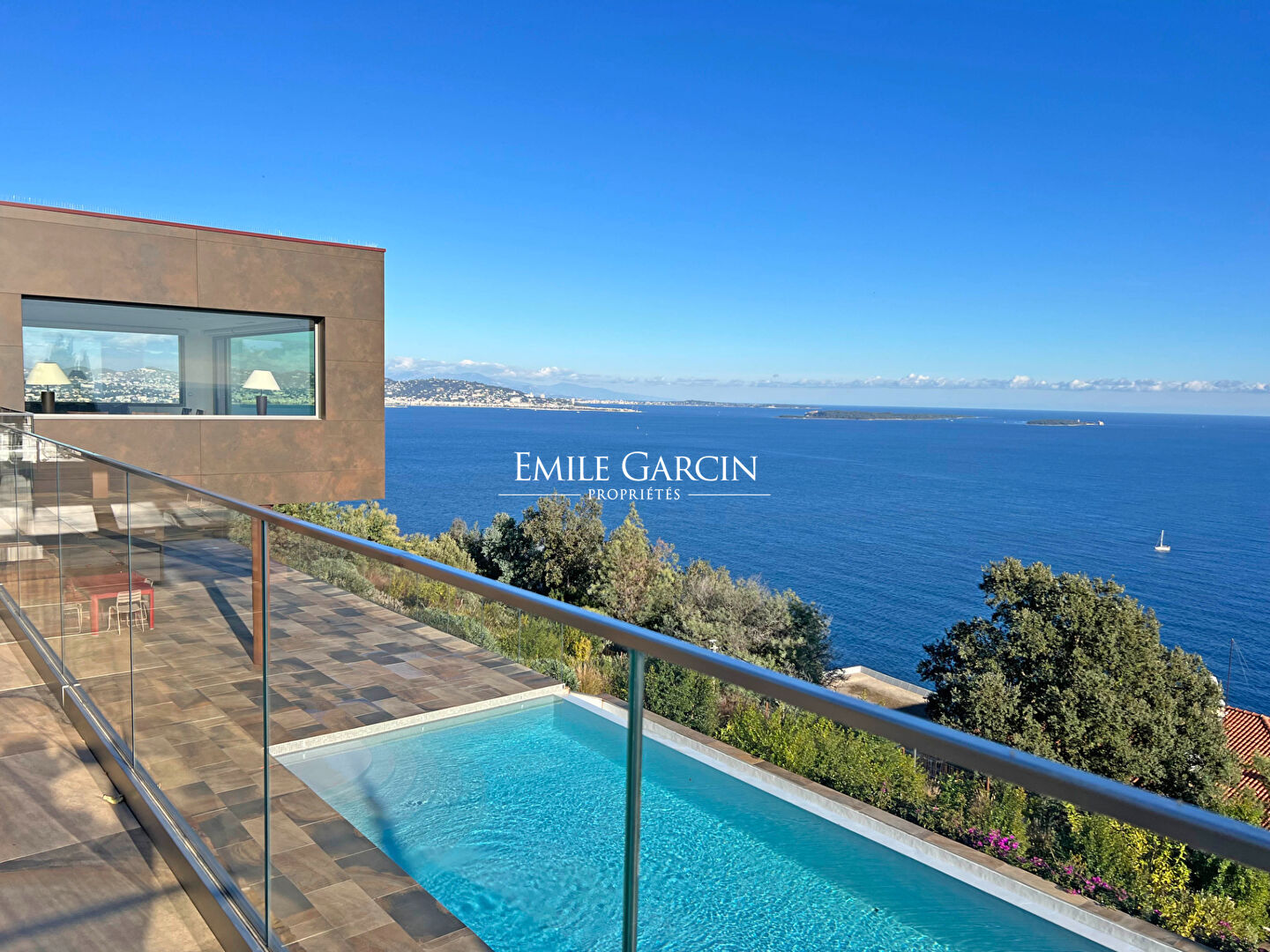 Sublime contemporary family house offering 340 sq.m of living area spread over two levels. Breathtaking panoramic sea view stretching from the Bay of Cannes to the tip of the Estérel. A veritable oasis of calm. In perfect condition throughout, the house presents seven ensuite bedrooms backing onto the sea-facing terrace. Magnificent 2000 sq.m garden with large infinity pool. Closed garage for four cars. 5 minutes from the beaches and 30 minutes from La Croisette.