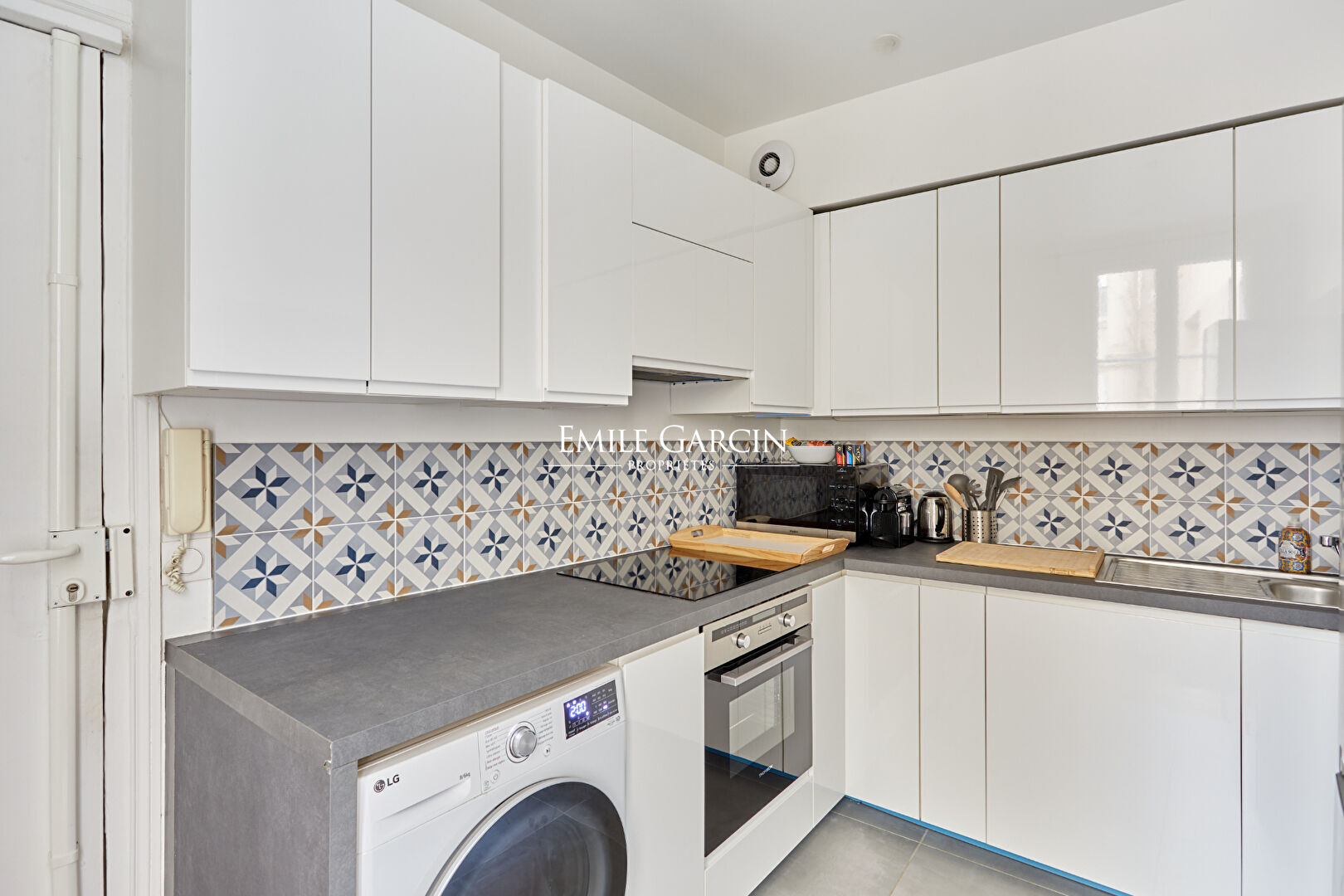 La cuisine indépendante, fonctionnelle et également aménagée, s'ouvre sur un espace convivial et intime. Côté nuit, une chambre, une salle de bains avec douche, un dressing sur-mesure complètent cet appartement avec de beaux volumes. Plan optimisé. Un parfait pied-à-terre de charme au coeur de la capitale. Emplacement rare. Copropriété de 22 lots - dont 13 lots habitation. (Pas de procédure en cours).