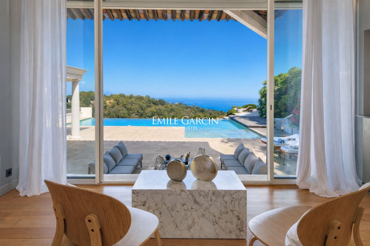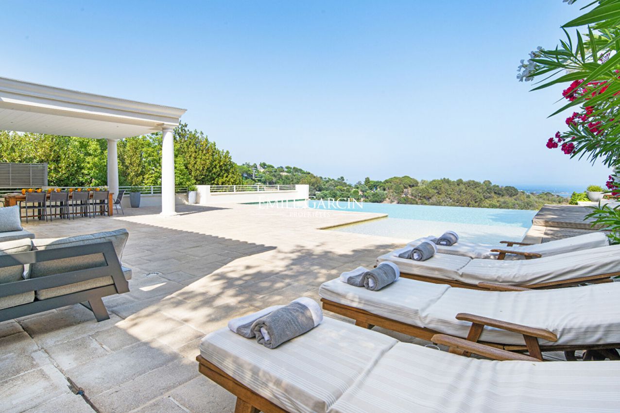 Exceptional sea view villa located in Super Cannes, offering total privacy and breathtaking panoramic views. Set on over one hectare of land, this 420 sqm property features six en-suite bedrooms, spacious indoor and outdoor living areas, and a heated infinity pool. The beautifully landscaped grounds provide multiple relaxation areas in a peaceful setting. Ideally located just minutes from Cannes and La Croisette, this villa combines prime location, generous volumes, and high-end amenities.
