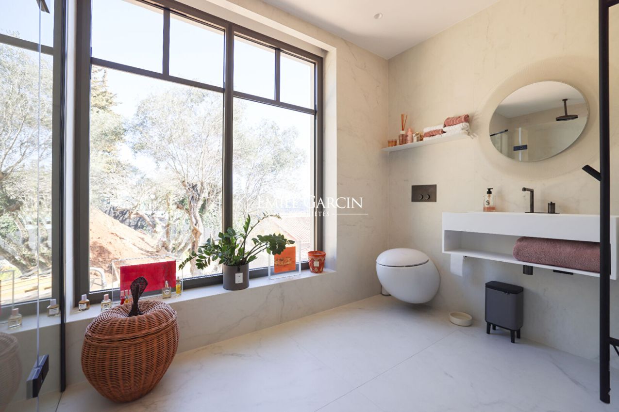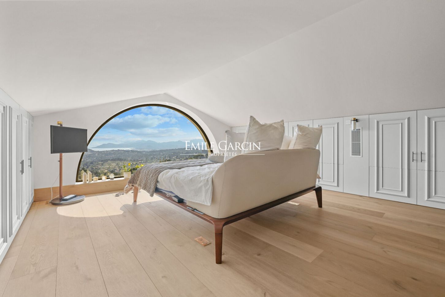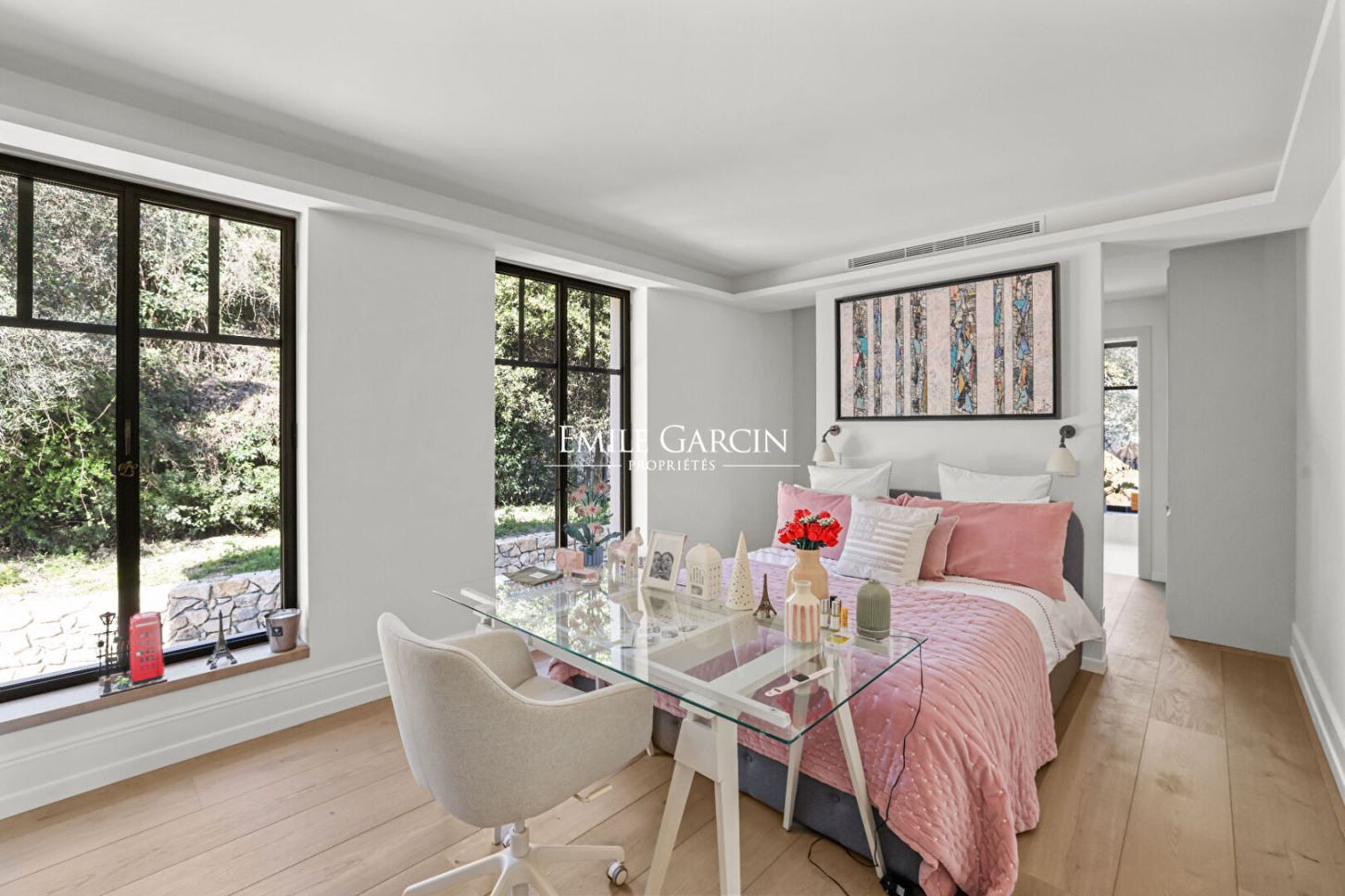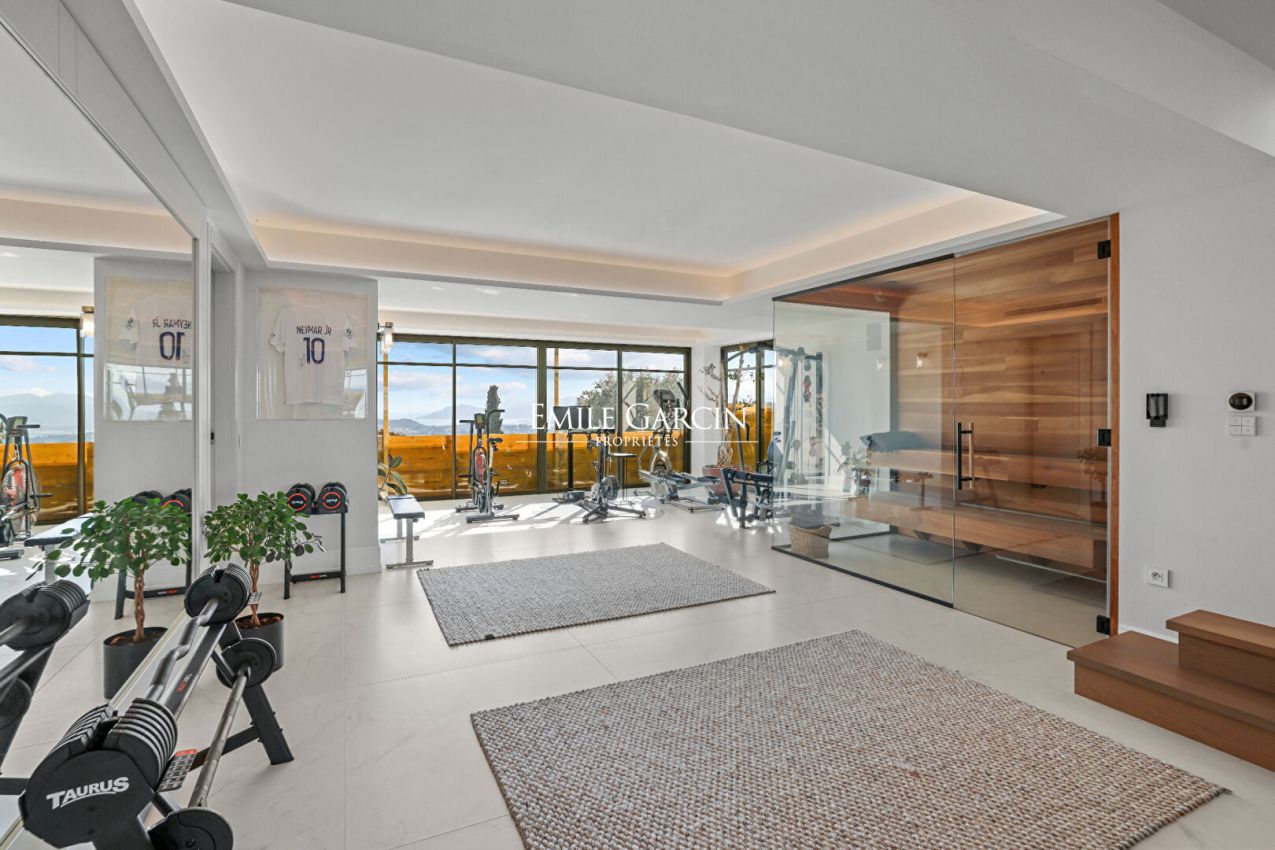 Stunning fully renovated contemporary villa ideally located less than a 10-minute walk from the historic village of Mougins. This high-end property features five en-suite bedrooms, spacious light-filled living areas, and open views extending to the Bay of Cannes. Designed with refined taste, it offers premium amenities including a heated swimming pool of 12m, a wellness area with sauna, Nordic bath and Japanese bath, as well as a fully equipped gym. Beautifully landscaped outdoor areas with elegant terraces provide a ???? and private setting, while remaining close to amenities and Cannes.