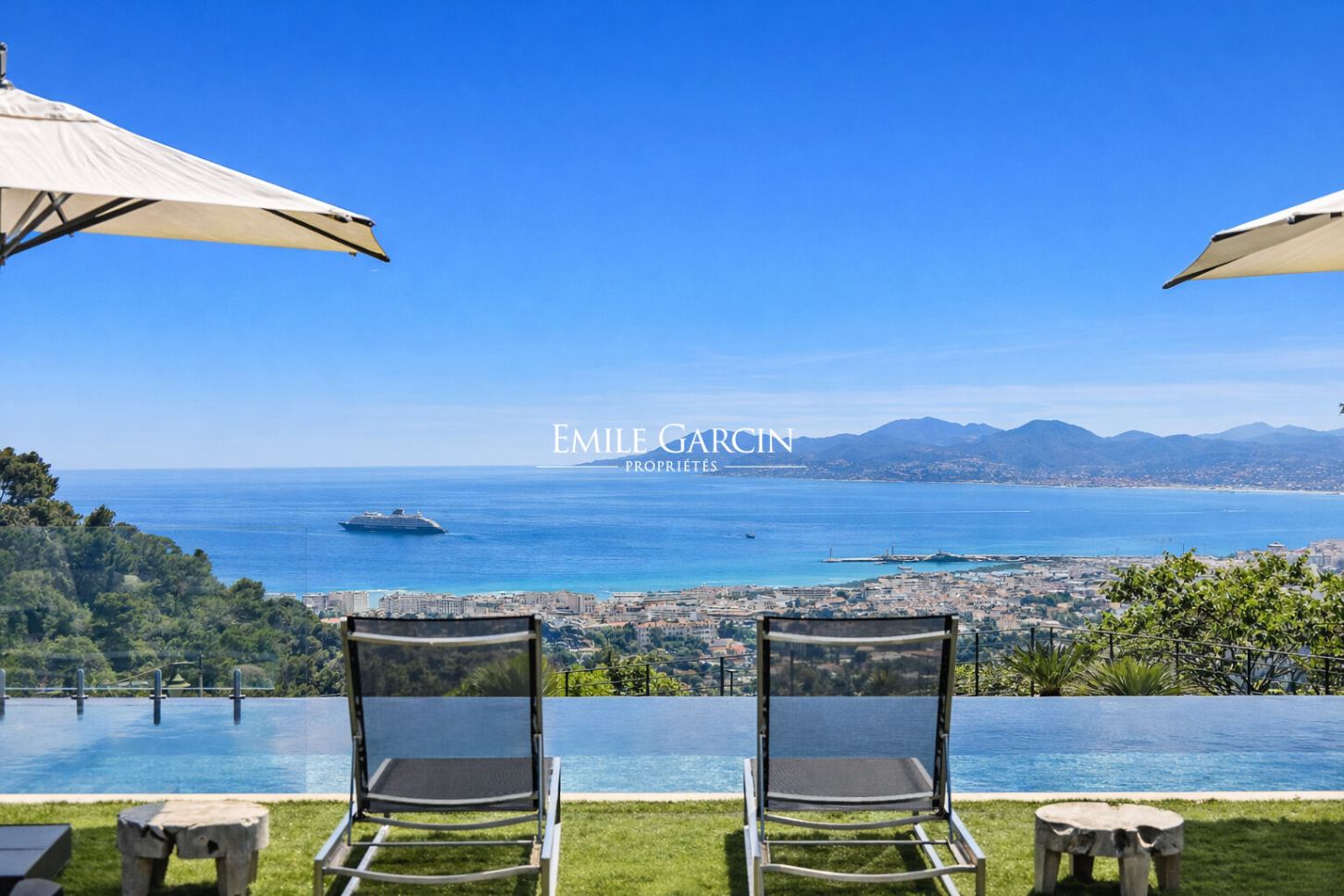 Located in the exclusive Californie district of Cannes, this contemporary villa embodies pure elegance and luxury. Built in 2023, this exceptional property presents over 620 sq.m of living area with a high-end finish. The villa comprises five sumptuous ensuite bedrooms, including two majestic master suites with private lounge, dressing room and panoramic sea view, as well as a caretaker's bedroom and a children's bedroom. The ground floor features a large bright living room with dining area and a fully equipped kitchen, all overlooking the Mediterranean seafront. All floors are served by an elevator. The wellness area on the lower level includes a gym, a sauna, a hammam and a home cinema. The garden is adorned with Mediterranean vegetation and features a large swimming pool, numerous outdoor lounges, dining areas, sun loungers and parasols. Several parking spaces. Ultra-secure. Home automation system. Less than 5 minutes from the beachfront and the centre of Cannes. An exceptional villa that provides the ideal setting for a luxurious holiday on the Côte d'Azur. A unique property presenting a perfect blend of refinement, tranquility and breathtaking sea views.