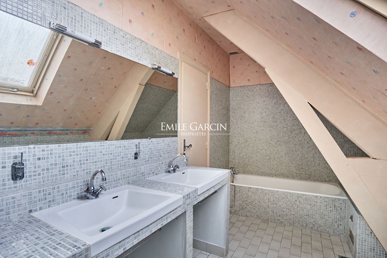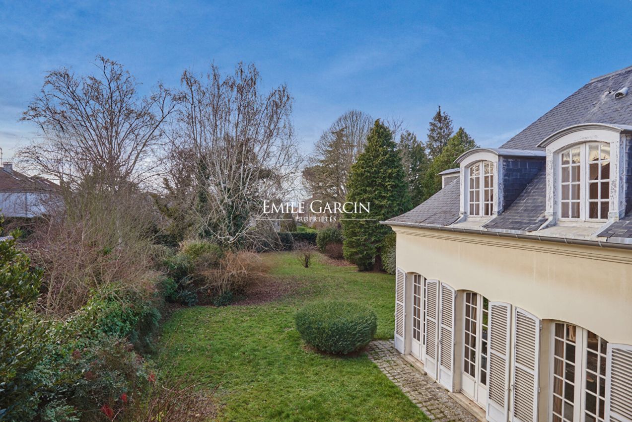 Located in one of Versailles' most sought-after residential areas, this Mansart-style family home presents 272 sq.m of living area (256 sq.m Carrez law) on 1,338 sq.m of secluded leafy grounds. Its elegant architecture and generously-sized rooms make it an ideal property for a large family seeking peace and greenery. Upon entering, the visitor discovers spacious and bright reception areas. The living room, backing onto the garden, features a beautiful fireplace and a southwest aspect that floods it with natural light throughout the day. The ground floor also includes an adjoining dining room, an office, a separate kitchen with utility room, a guest WC and a suite with independent access including bedroom, bathroom and toilet. Upstairs, there is a master suite with ensuite bathroom, five further bedrooms, a dressing room, a bathroom with WC and a shower room. The house also features an attic, a 22 sq.m basement, a 37 sq.m garage with space for two vehicles, and a landscaped garden (not overlooked). In need of updating in places, this beautiful property is idyllically located close to renowned schools (Saint-Jean Hulst, Blanche de Castille, Les Châtaigniers), sports facilities and major transport links.