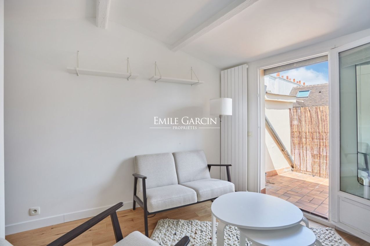 Located on the sixth floor of a 19th-century building, this studio apartment presents 19.25 sq.m of living area overlooking the street. This dual-aspect studio is in perfect condition and comprises a bright living room with open kitchen, a sleeping area, a shower room with toilet and a terrace of approximately 8 sq.m. The perfect Parisian pied-à-terre. Stair access only. Condominiums of 16 units.