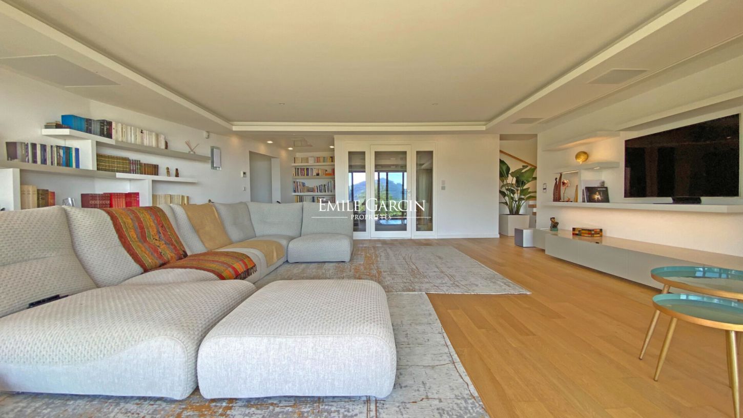 Modern house in Théoule-sur-Mer boasting an infinity pool and breathtaking views of the seafront and the Massif de l'Esterel. A sublime modern house with a high-end renovation. Idyllically located just 10 minutes from the centre of Théoule-sur-Mer and 5 minutes from the beachfront, this property is perfect for your holidays on the French Riviera. Infinity pool with panoramic views of the Mediterranean Sea and the majestic Massif de l'Esterel. The spacious house can accommodate up to 10 people in 5 elegantly decorated bedrooms and 4 modern bathrooms, ensuring comfort and privacy for all guests. The two bright living rooms are perfect for relaxing with family or friends. The fully equipped kitchen will allow you to prepare delicious meals with local produce. Outside, the infinity pool is surrounded by deckchairs to enjoy the sun. For summer evenings, a barbecue is at your disposal. The home cinema promises unforgettable moments of entertainment. The private parking facilities can accommodate up to 5 or 6 cars. Whether you are looking for relaxation or outdoor activities, this modern luxury property will make the ideal setting for a memorable holiday on the Côte d'Azur. Book your stay in this magnificent house in Théoule-sur-Mer and enjoy an exceptional location for an unforgettable holiday.