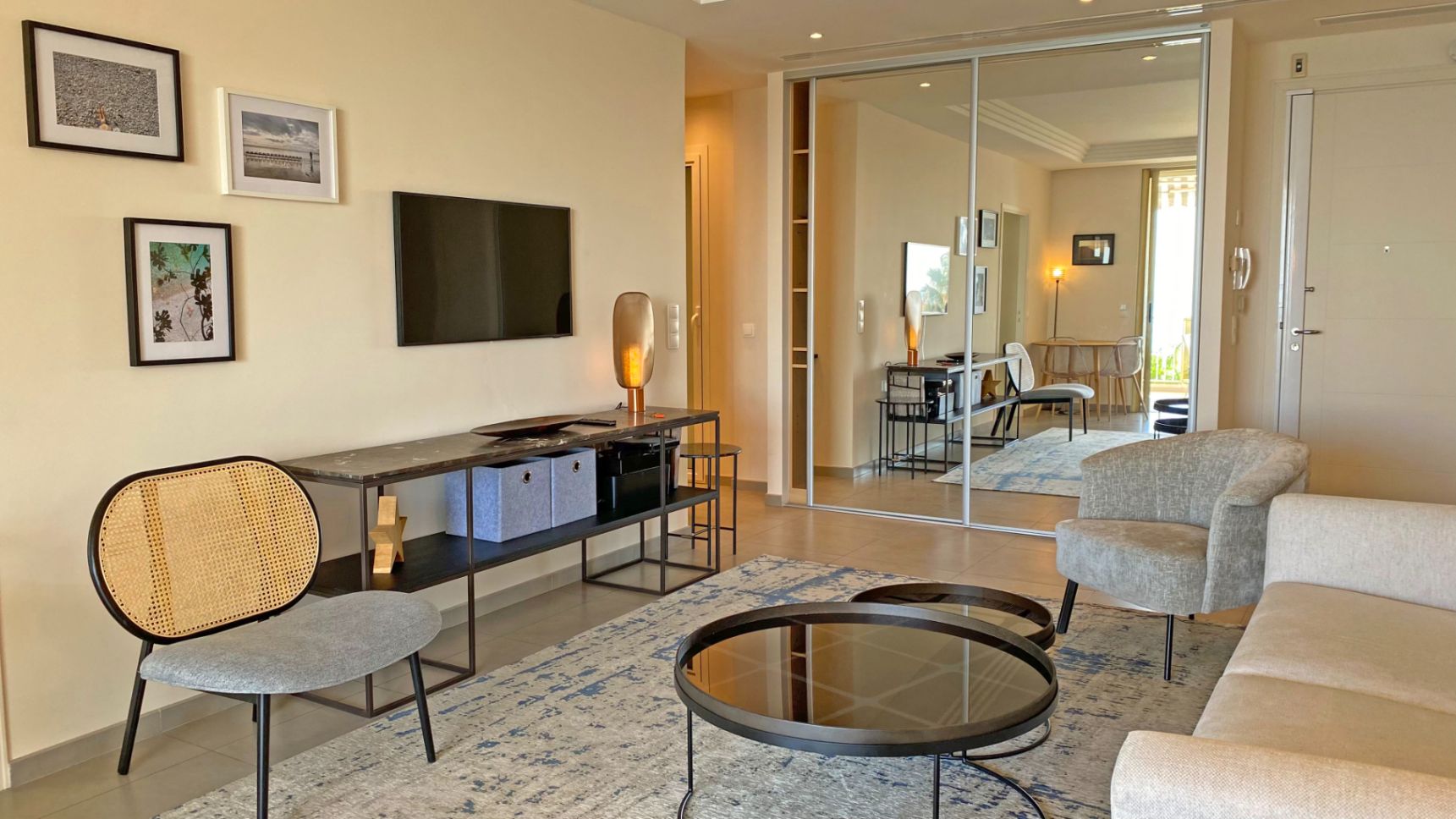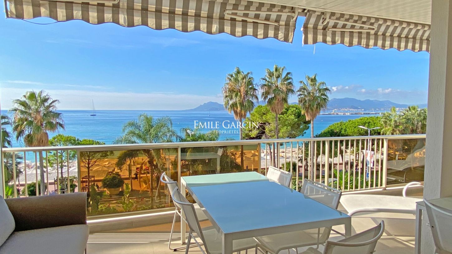 Magnificent apartment located in the heart of La Croisette, under 10 minutes by foot from the Palais des Festivals. Breathtaking sea views, large 25 m² terrace with deckchairs, outdoor table and sofa. Spacious and modern interior. Large bedroom with shower room and workspace. Can accommodate up to 3 people comfortably. Parking space included.