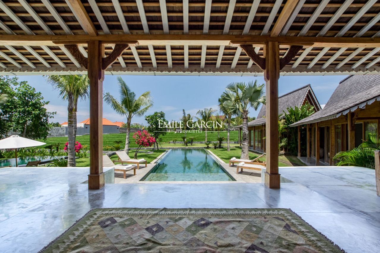 Set amidst Kerobokan's rice fields, this villa spans 800 sqm, offering a tranquil escape near Seminyak. This 8-bedroom retreat features two Joglo-style pavilions, blending traditional charm with modern comfort.