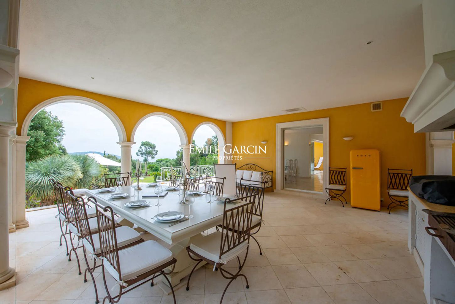 All the charm of Italian-style architecture can be found in this luxurious property of 400 sqm. Positioned on a dominant landscaped plot of 7,000 sqm with a beautiful sea view over the bay of Gigaro. Between La Croix Valmer and Ramatuelle, 15 minutes by car from Saint-Tropez and the beaches of Pampelonne. Easy access to the beaches of Gigaro. Heated infinity pool, jacuzzi. 6 bedrooms, 6 bathrooms. Registration number: 83048001258 ZR