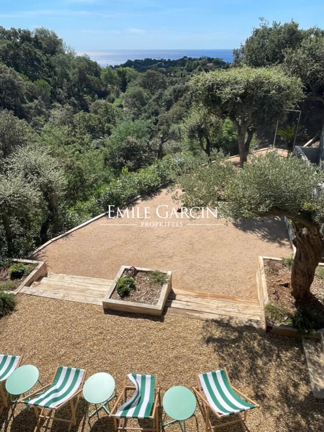 Located in a private domain near Gigaro, this elegant hillside villa presents a blend of Provencal charm and modern comfort in a peaceful setting. The generous and bright interior includes 4 bedrooms and 4 bathrooms. Outside, you will enjoy a heated infinity mirror pool, a pétanque area and a ping-pong table, as well as a garage and parking facilities. An exceptional setting to enjoy your holiday in complete serenity. Registration number: 83048 001660 T6
