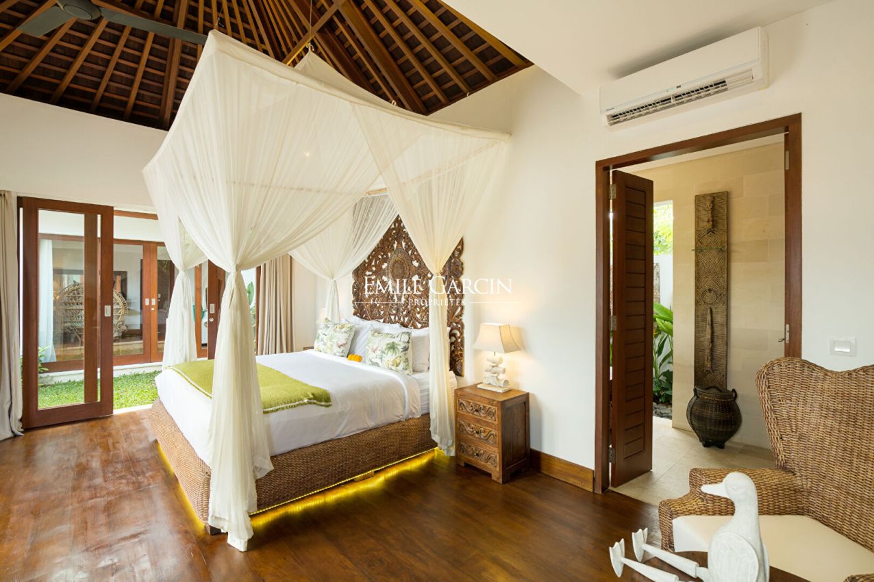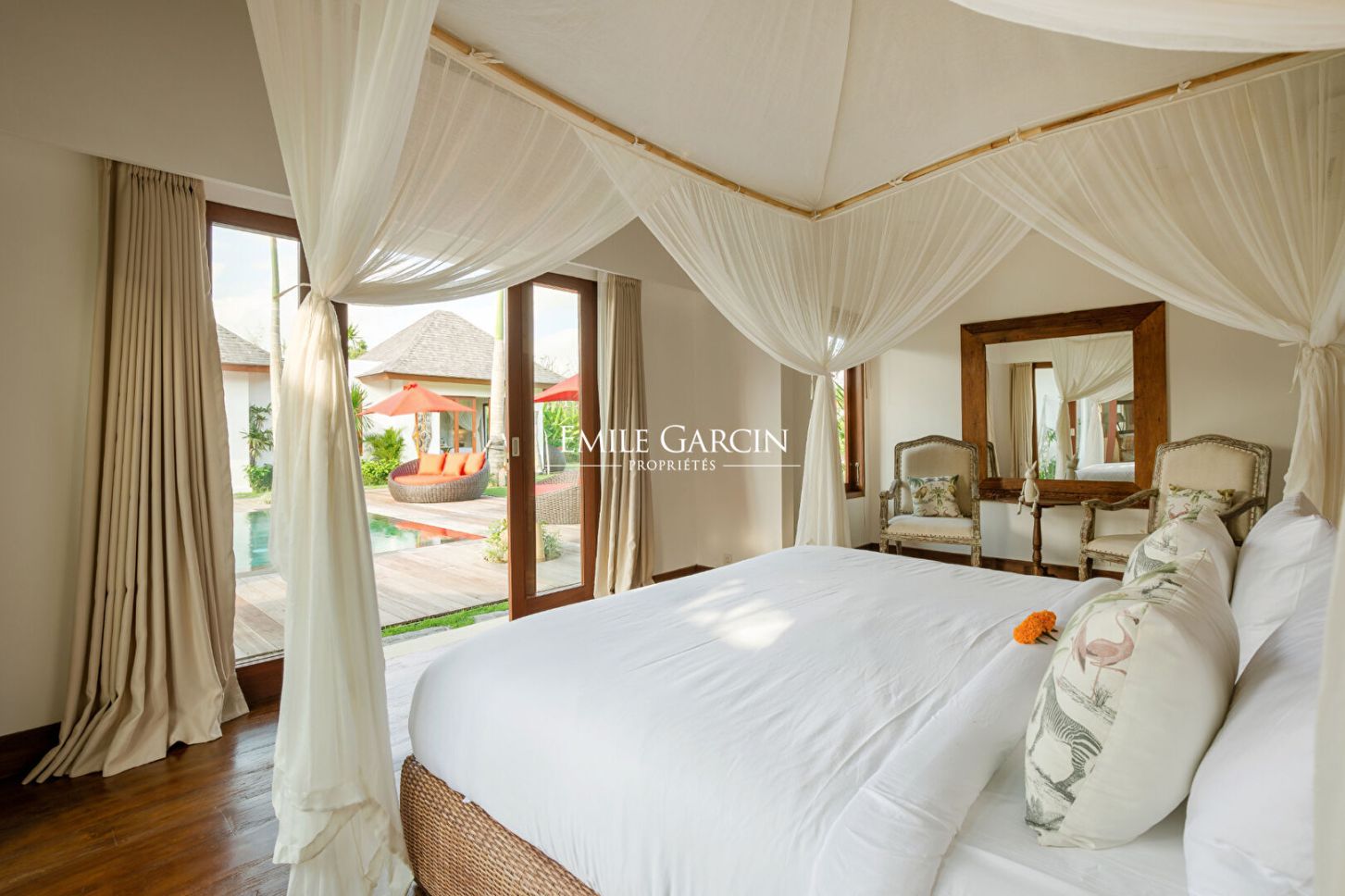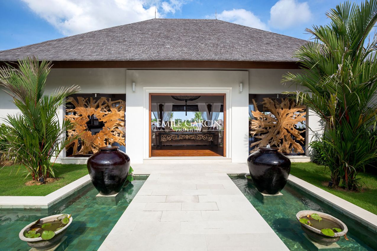 Nestled in the heart of 2600 square meters of tropical gardens and surrounded by Balinese rice fields, this villa offers a peaceful and pleasant setting. Located near Seminyak, this six-bedroom sanctuary is the perfect haven for gatherings with friends and family. Each bedroom, arranged around the pool, offers its own en-suite bathroom, while the two master bedrooms have private plunge pools. The spacious living and dining areas cover almost 200 square meters, providing ample space for relaxing and entertaining. Fully equipped, the villa offers a 25-meter swimming pool, a gym and a media room. You can also enjoy delicious meals prepared on the barbecue or pizza oven, or indulge in some friendly competition in the billiard room. With an outdoor gazebo for massages and a seamless fusion of indoor and outdoor spaces, this villa promises an unforgettable getaway. **Available from 4 bedrooms.