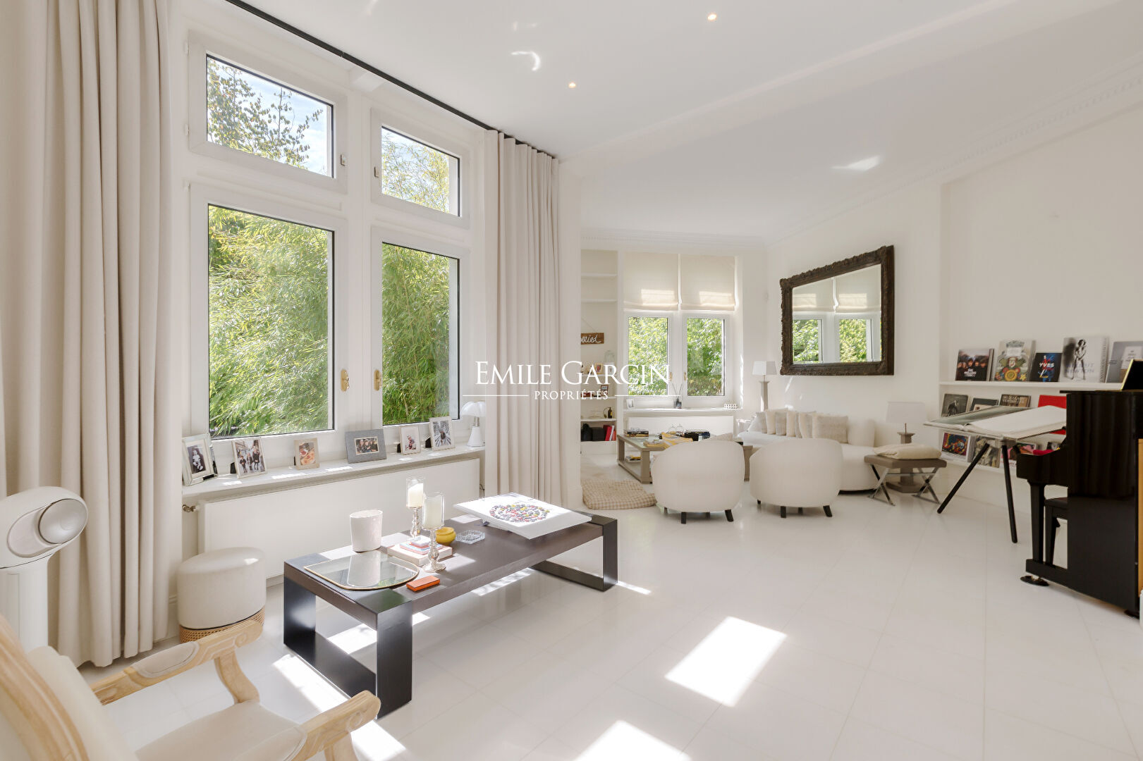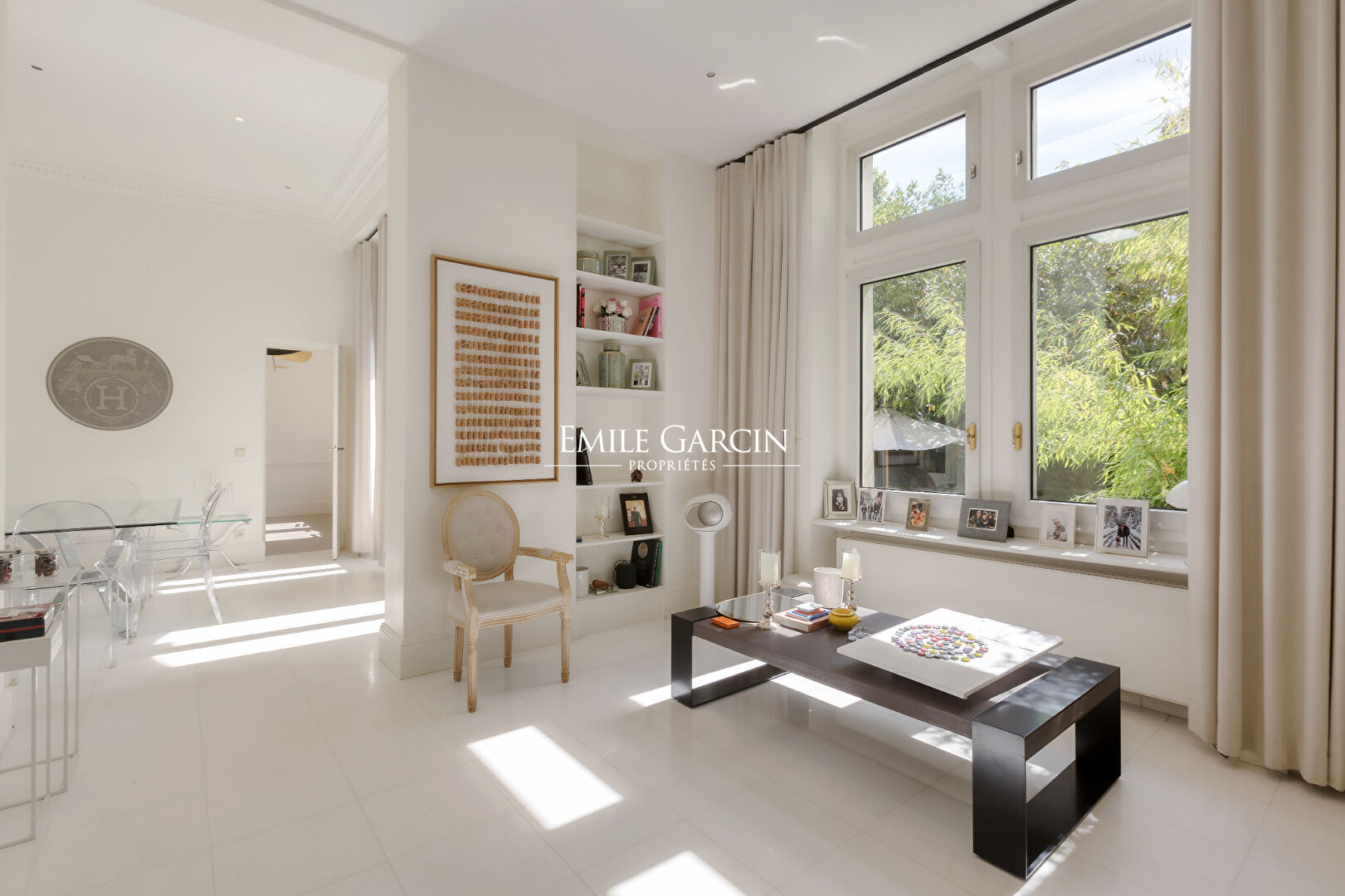 Located in exceptional surroundings, this superb ground floor apartment offers 246 m² of living area and a 420 m² garden. The property comprises, on the ground floor: a entry hall, a very beautiful reception area with 4-metre high ceiling and garden access, a kitchen-diner and two en-suite bedrooms including a master suite with closets; at basement level (accessed via an internal staircase): 3 bedrooms, a bathroom, a shower-room, a utility room, a guest WC, many storage spaces and the potential for an additional bathroom. It also includes 2 garages and a cellar. Double-exposition apartment, spacious, charming, green spaces, not overlooked. A high quality property, rare on the market.