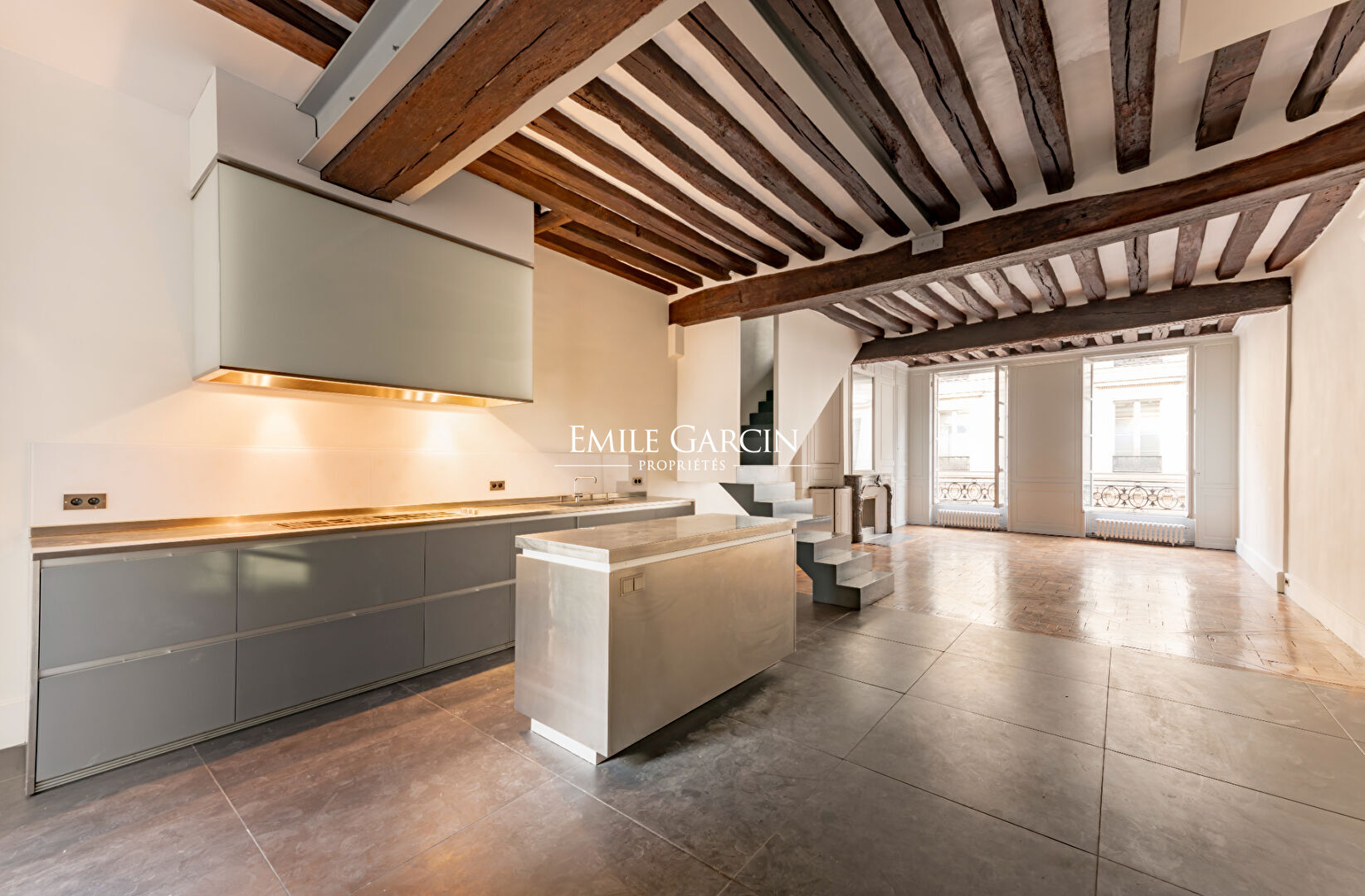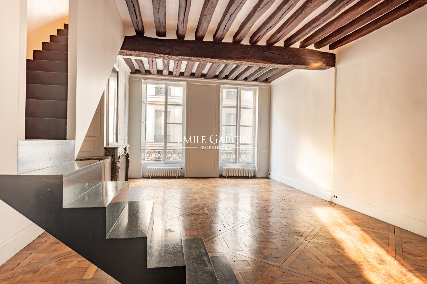 Located on the second floor of a stone building, this charming apartment presents 103.57 sq.m of living area (Carrez law). Facing south and west, the property comprises an entrance, a large reception room of 64 sq.m with herringbone parquet flooring, a high ceiling and a fireplace, a professional-quality open kitchen and a WC; upstairs, you will find a suite of 25 sq.m with storage, a shower room with toilet, and a storage facility. There is the potential to easily create a second bedroom by purchasing an adjoining apartment of 26.91 sq.m (not included in the asking price). An elegant apartment in very good condition. Sold with a cellar.