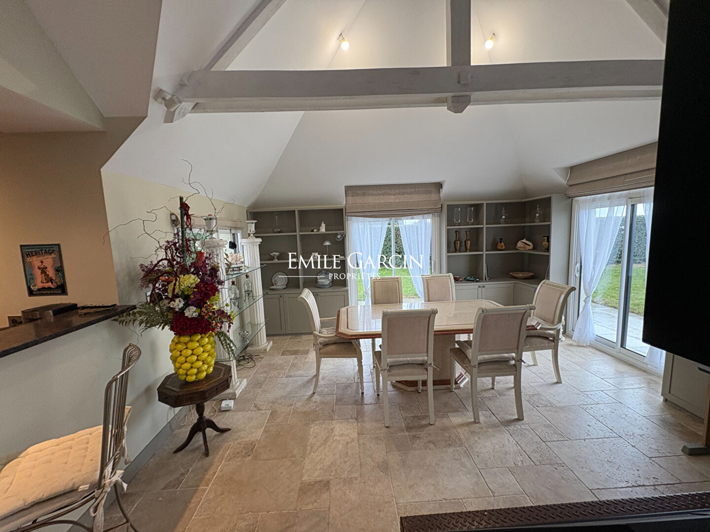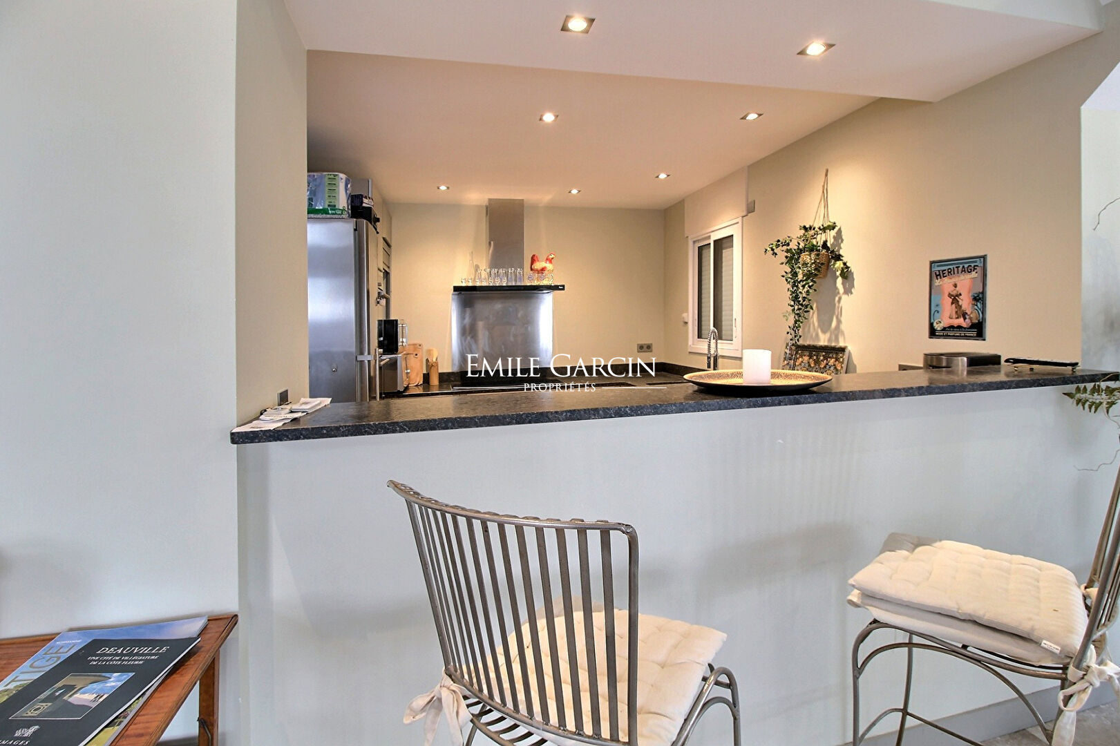 Located in Normandy, in the heart of the Côte Fleurie, this magnificent single-level house stands out for its prime location and modern architecture. Sitting on approximately 1,000 sq.m of land, it presents a carefully landscaped garden and direct access to Ammonites Beach. With a living area of ??approximately 235 sq.m, the property combines comfort and a high quality finish. The entry leads to a vast room flooded with natural light. The ground floor also comprises an elegant living room, a dining room and a semi-open fitted kitchen, all offering breathtaking sea views and access to a beautiful terrace. The sleeping area includes a master suite with a dressing room, an elegant bathroom with a sea view, a children's bedroom, a guest bedroom, and a home office (or fourth bedroom). Two additional shower rooms complete this part of the property, which is linked to a fully renovated old blockhouse by a walkway with a glass roof. The latter houses a laundry room, a room with French windows, a shower room, a hammam, and a games room. There is also a bicycle store. Located within a private estate with access to a shared swimming pool, this property offers an exceptional setting between the sea and the countryside. It presents the perfect blend of comfort and authenticity, just a short walk from the beach and close to Deauville. A rare and sought-after property, whether for use as a primary or secondary residence. A unique opportunity not to be missed. Condominiums of 52 units (No proceedings in progress). Annual expenses : 6000 euros.