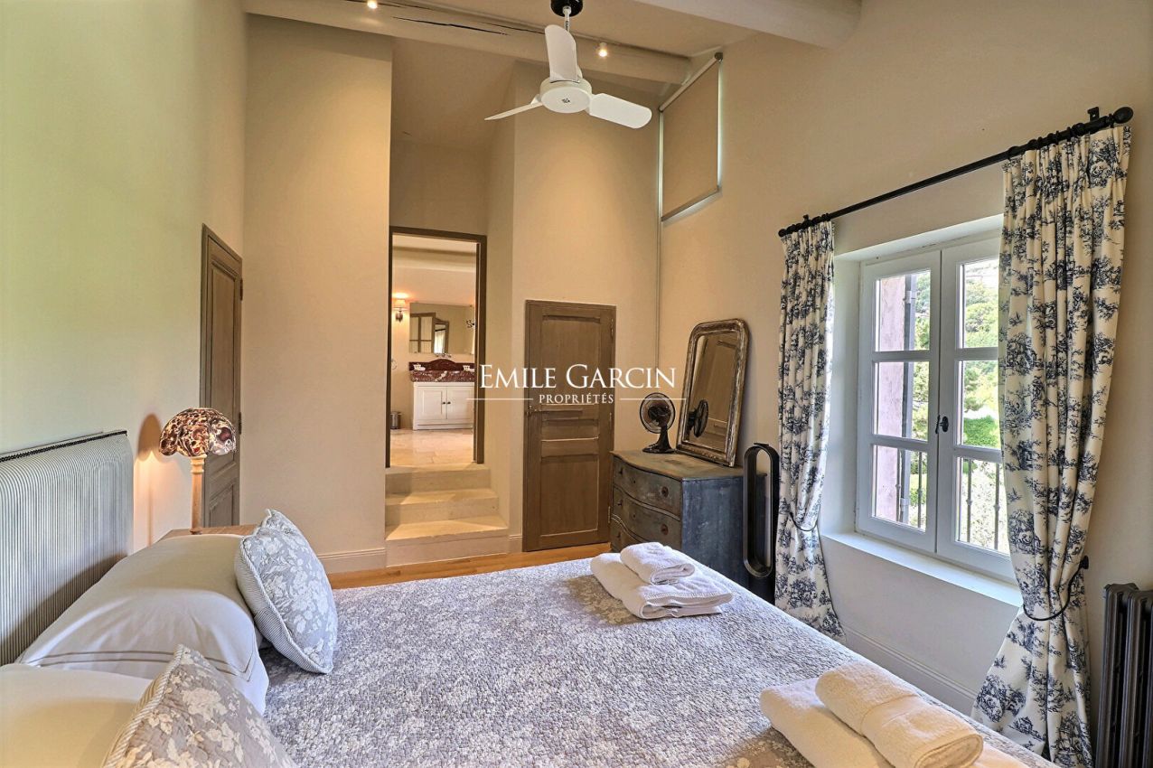 In the heart of the Provençal countryside, near the village of Lacoste, Mas Sentosa is a peaceful retreat that combines historic charm with modern comfort. This elegant 18th-century farmhouse, beautifully renovated, offers 300 m² of bright and refined living spaces, nestled within a private 3-hectare estate. Surrounded by nature, the mas invites relaxation with its shaded terraces, Mediterranean landscape, and heated 10 x 5-meter swimming pool, perfect for cooling off under the Luberon sun.