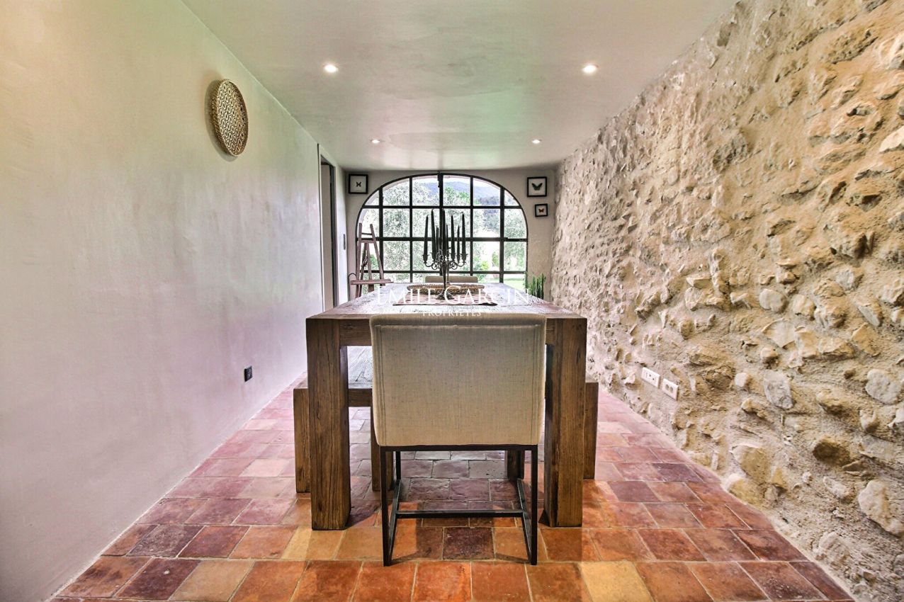 In a peaceful setting (the last house on a dead-end road), the 18th-century Mas de l'Escalette is nestled in a secluded and sheltered location, offering breathtaking panoramic views of the surrounding countryside and the Luberon mountains. The village is within walking distance. The property features 5 bedrooms (4 with air conditioning), a children's dormitory, and 5 bathrooms. It can accommodate up to 10 people (including children). Enjoy the 11 x 5 m heated infinity pool. The property sits on 7.5 hectares.