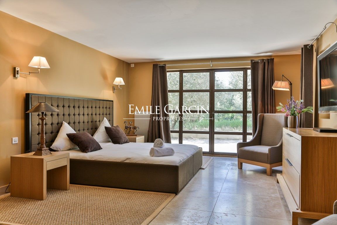Located just a few minutes by foot from the town centre of Saint-Rémy-de-Provence, this fully restored farmhouse offers six bedrooms and five bathrooms, as well as a 16-metre heated swimming pool and a superb view of the Alpilles. Additional facilities include a ping-pong table, four bicycles and a pétanque area. Idyllically located, this bright house is the ideal setting for anyone wishing to enjoy a peaceful holiday in green surroundings in the company of friends or family. The perfect blend of period architecture (mullioned windows, stained glass) and modern comfort.