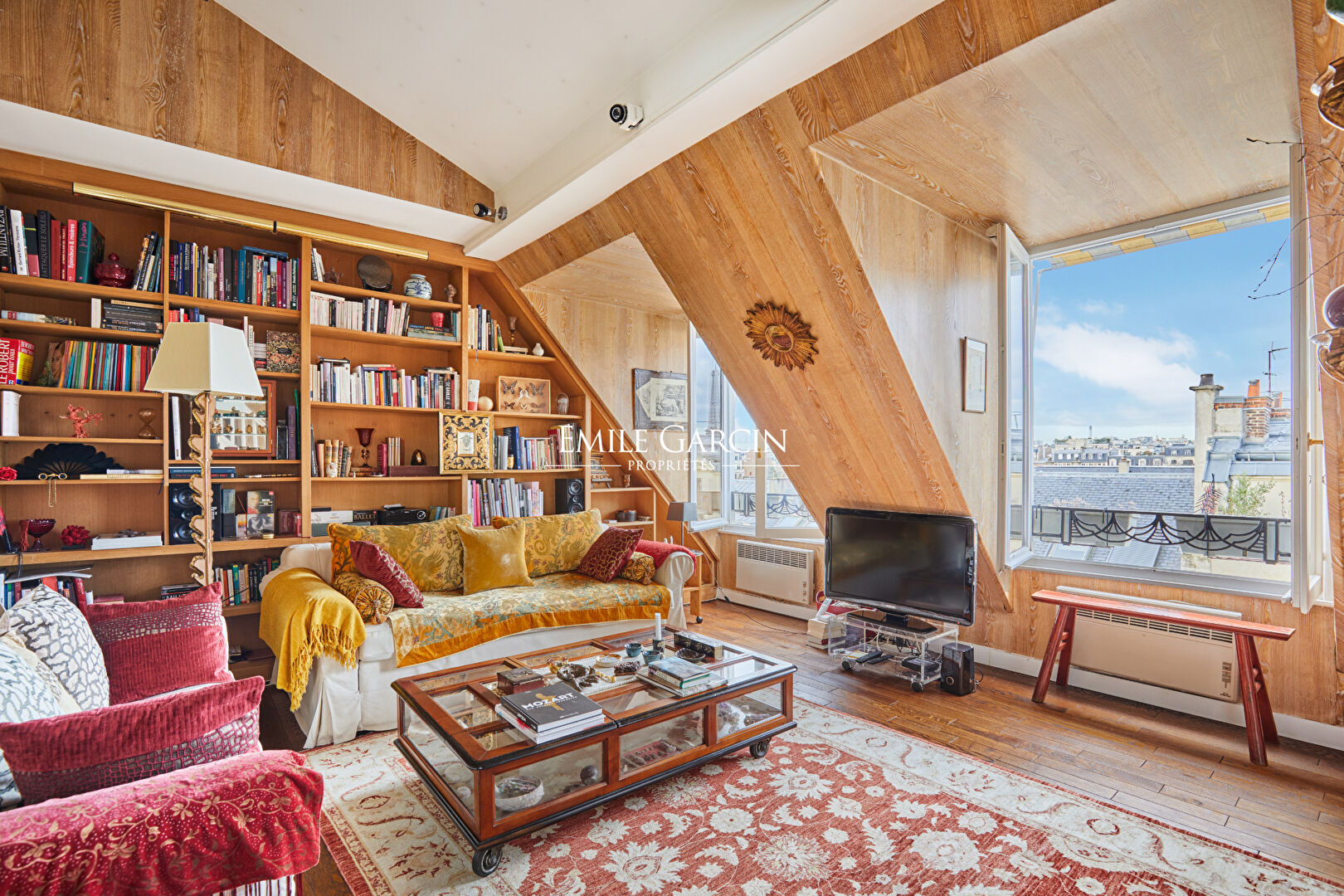 Exclusively, near Babylone and "Bon Marché", a duplex apartment perched on the top two floors of a magnificent building built in the nineteenth century perfectly maintained, with elevator and caretaker. This apartment of 71.17 m² on the ground (60.54 m² Carrez) is lived like a house From the entrance, the charm operates, the cathedral living room bathed in light, facing west, enjoy thanks to its three windows a spectacular panorama of the Eiffel Tower, the Dome of Invalides and a multitude of Parisian monuments. A dining room, an equipped kitchen with pantry and guest toilets complete this level, designed to combine comfort and refinement. Upstairs, an air-conditioned and peaceful room enjoys the same exceptional view, a true unique show. An elegant and adjoining bathroom. Crossing, in absolute calm, bathed in light and with completely unobstructed views. This rare apartment embodies the ideal Parisian pied-à-terre: a warm, unique and poetic place. Condominiums of 26 units (No proceedings in progress). Annual expenses : 1465 euros.