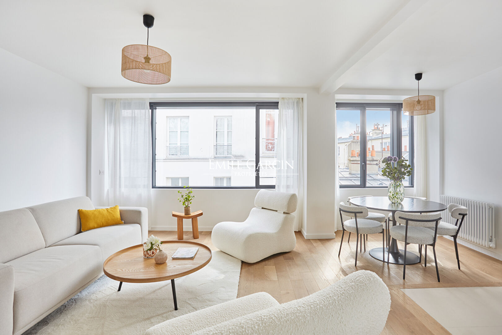Property for sale in a high-quality new development, idyllically located close to the local shops in a peaceful yet historic neighborhood near the Place des Vosges, the Seine and Bastille. The apartment is perched on the top floor (Level 5) and overlooks a leafy paved courtyard. Reduced notary fees. This workshop-style apartment offers 104.8 sq.m of living area comprising a living room with open kitchen of approximately 39 sq.m, three bedrooms (including a 25-sq.m master suite with dressing room, shower room and toilet), a shower room and a WC. A luxury development with a high-quality finish in a neighborhood where new-builds are otherwise non-existent. Bicycle store. Elevator access.