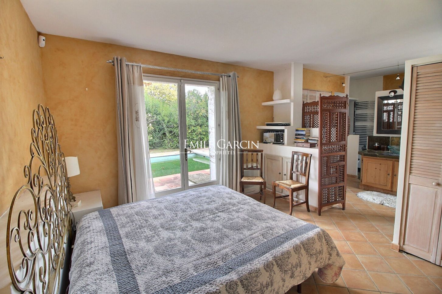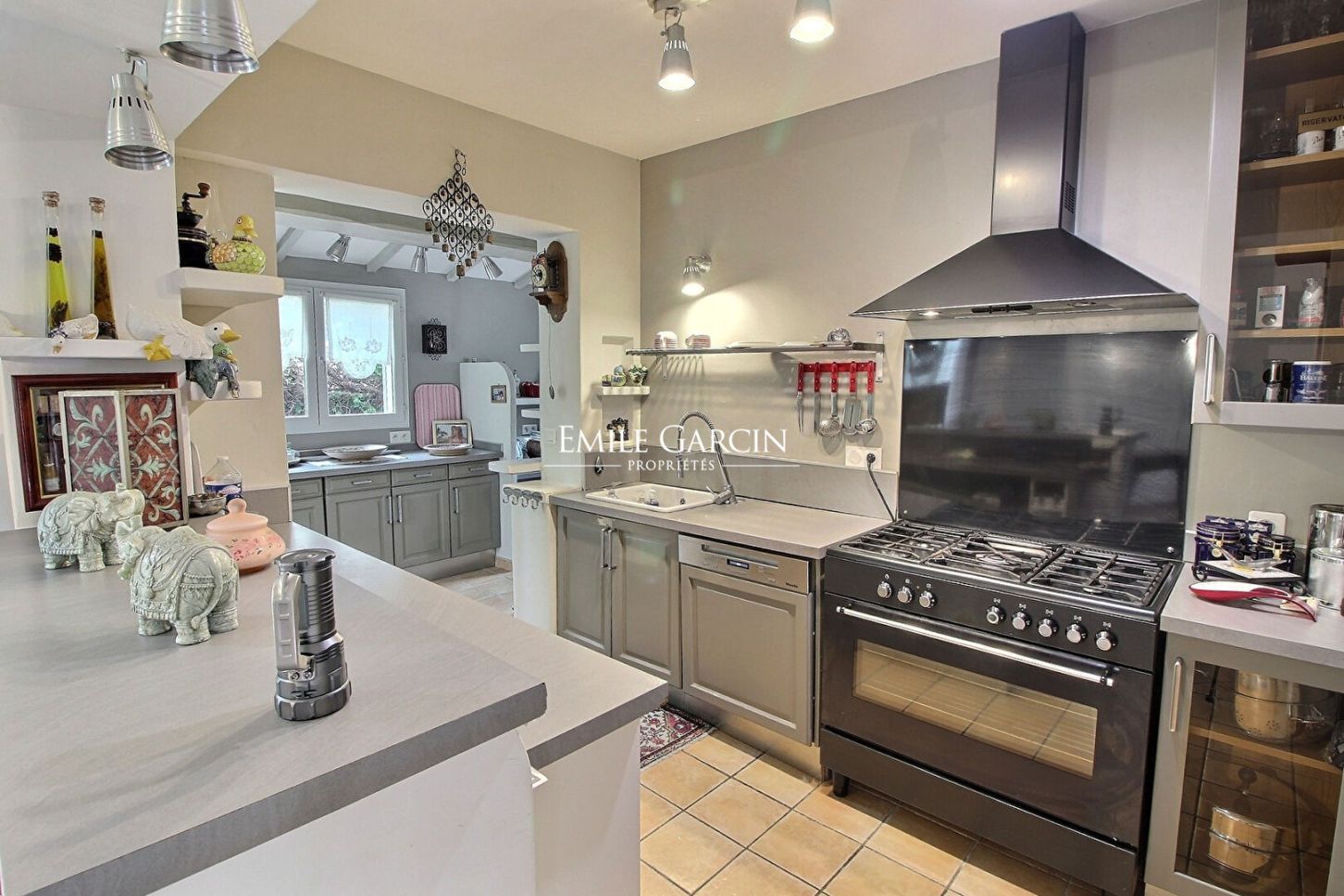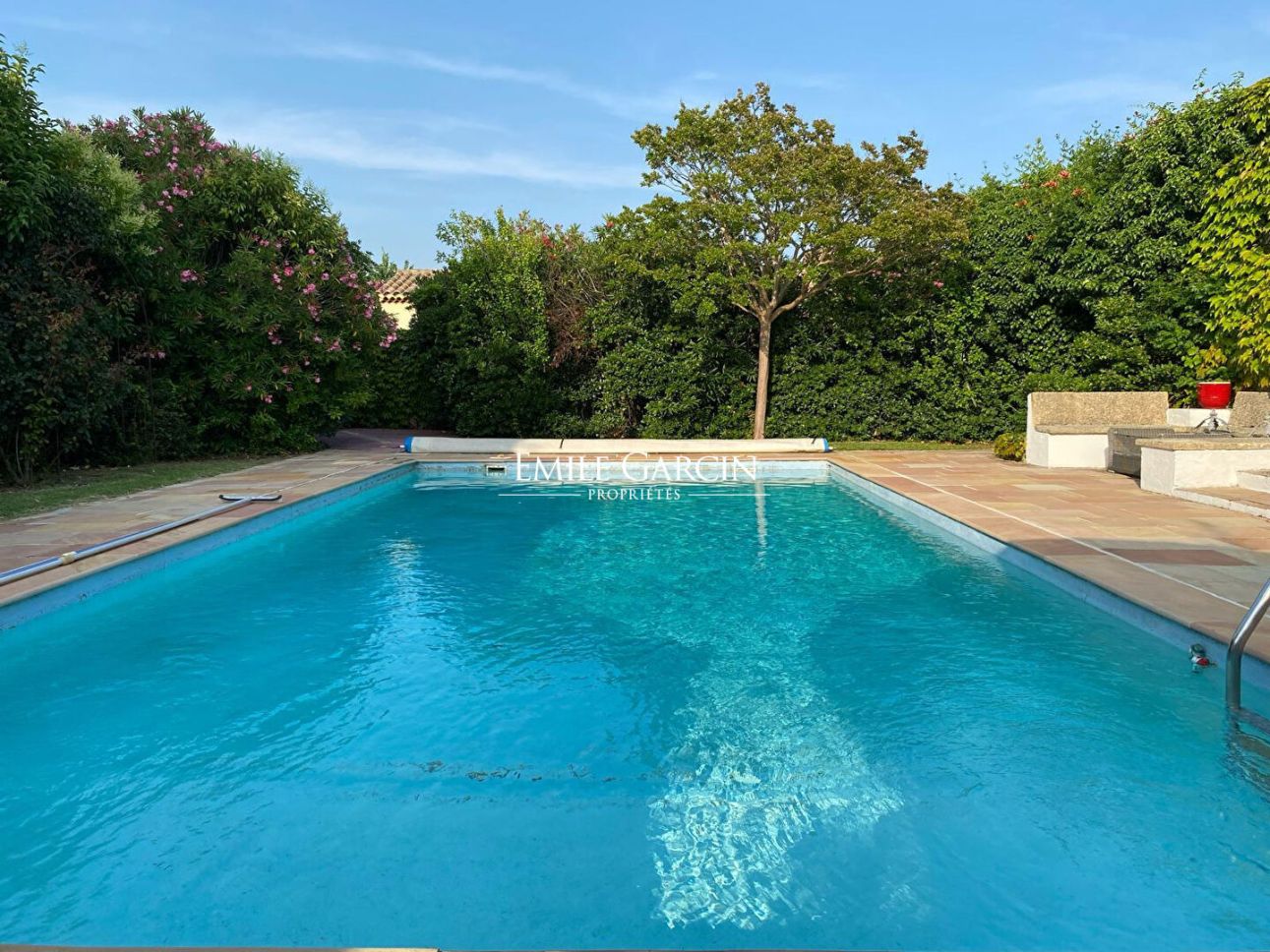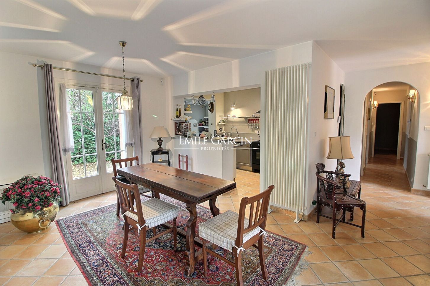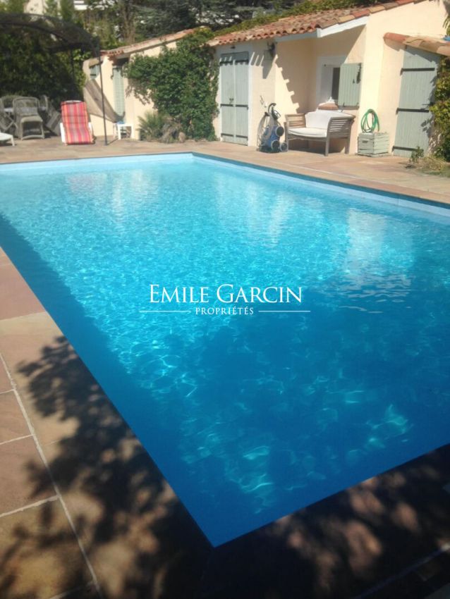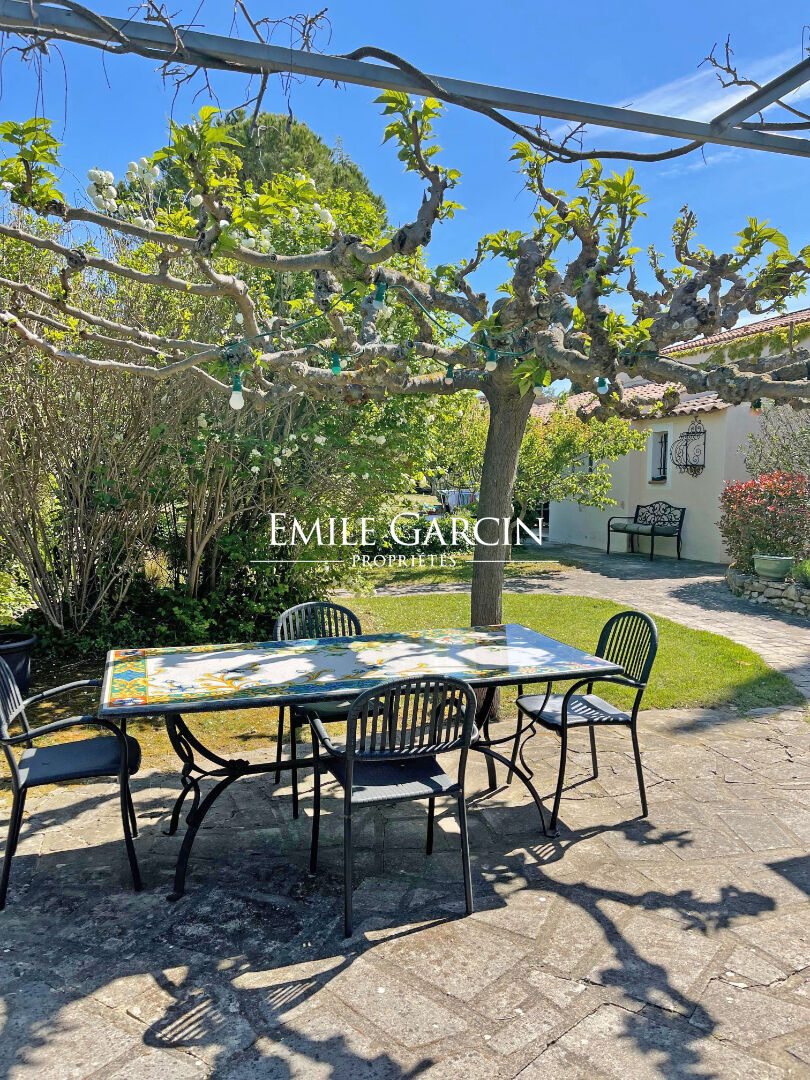 This charming single-level house presents approximately 210 sq.m of living area. Located in a peaceful setting in the heart of the Provençal village of Velaux, just 20 minutes from Aix-en-Provence, it is within easy reach of both the TGV train station and airport. The main house features a bright and spacious living area comprising living room, dining room and large open kitchen with dining area, plus two bedrooms (including a master suite with its own shower room), a bathroom and an office. Two outbuildings are full of potential for further development (staff accommodation or rental units). It all sits on 1,650 sq.m of enclosed landscaped grounds, providing a leafy, tranquil and private setting. The outdoor facilities include a lovely swimming pool and two covered carports. All village amenities are within walking distance. A must-see property.