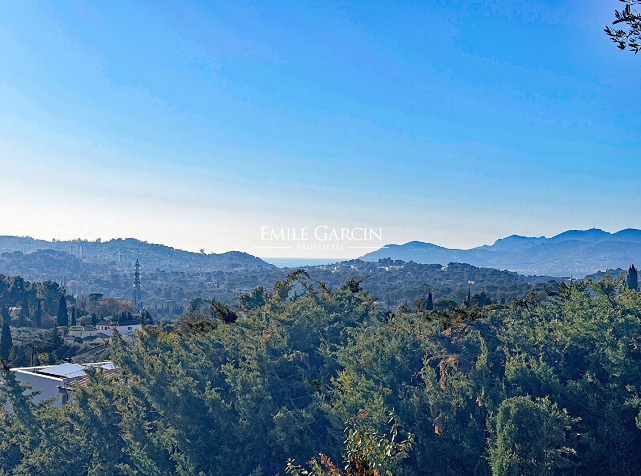 Boasting an idyllic hilltop location, this charming single-level house presents approximately 80 sq.m of living area in a peaceful, green, residential setting. This south-facing house offers significant potential for development and could be extended to suit your lifestyle. Planning regulations allow for an additional footprint of 15%. Sitting on 1,900 sq.m of magnificent private grounds, the property offers unobstructed panoramic views of the surrounding hills and a pleasant glimpse of the sea, inviting relaxation and contemplation. This is a sought-after setting combining tranquility with immediate proximity to the local shops and schools. It would make an ideal primary or secondary residence. A rare find. Not to be missed.