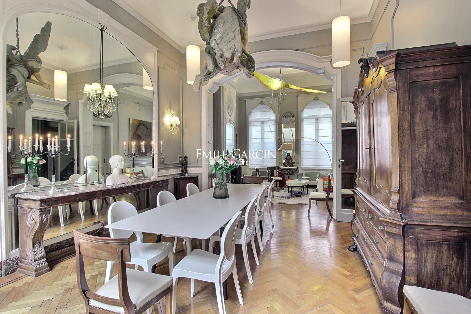 Charming renovated property located on a quiet street near Avenue Louise, just a short walk from the Place Stéphanie. Standing out for its meticulous renovation, which has ensured the perfect blend of period character and contemporary comfort, this elegant house presents approximately 459 sq.m of living area. Currently operating as a charming guest house, the property offers the perfect embodiment of the Brussels lifestyle: a spacious interior, majestic high ceilings, original decorative features and a warm ambiance. The ground floor comprises a spacious entry hall leading to magnificent adjoining reception rooms, including a living room and a bright dining room, plus a fully equipped kitchen. A conservatory extends the living space and backs onto a peaceful courtyard. Accessible via an elevator, the upper floors present four spacious suites, each with its own private bathroom. Each bedroom has its own unique character combining aesthetics, comfort and a high-quality finish. The basement level is equipped with a multi-purpose room (ideal as a workshop, gym or guest room) as well as several storage cellars. The spirit of the property has been preserved thanks to its respectful yet bold restoration: beautiful woodwork, monumental mirrors and works of art all interact harmoniously. EPC: D