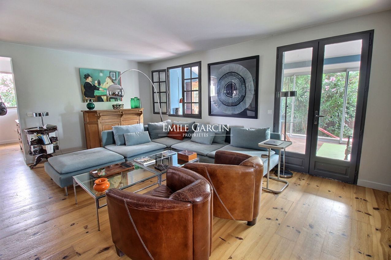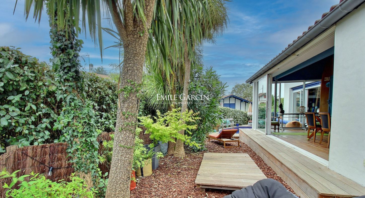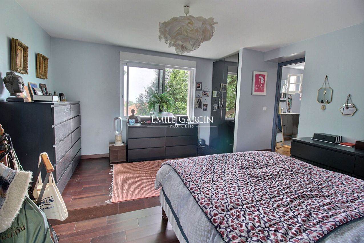 Idyllically located in peaceful surroundings in the heart of the charming village of Guéthary, this cosy family home presents 250 sq.m of living area. Sitting on 544 sq.m of landscaped grounds equipped with a swimming pool, it offers a unique and privileged living environment. The ground floor comprises a beautiful entrance hall, a large living room with a wood-burning stove, a light-filled veranda and a bright and welcoming kitchen. It backs onto several terraces and a small heated swimming pool. The master suite is equipped with office, bedroom and bathroom and offers an ocean view. Upstairs, you will find three attic bedrooms, each with its own shower room, plus a cosy lounge/games area. One of the bedrooms has a view of the ocean and the village. At the garden level, there is an independent studio of 25 sq.m with a private garden, which offers excellent rental income potential. Finally, the property features a large garage and plenty of storage space. A unique opportunity to live in the heart of the village, just a few steps from the beach, in a peaceful setting with no immediate neighbours.