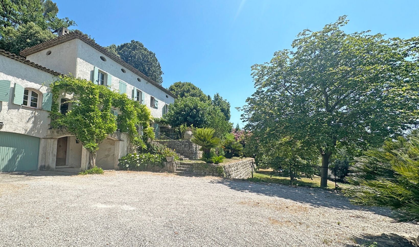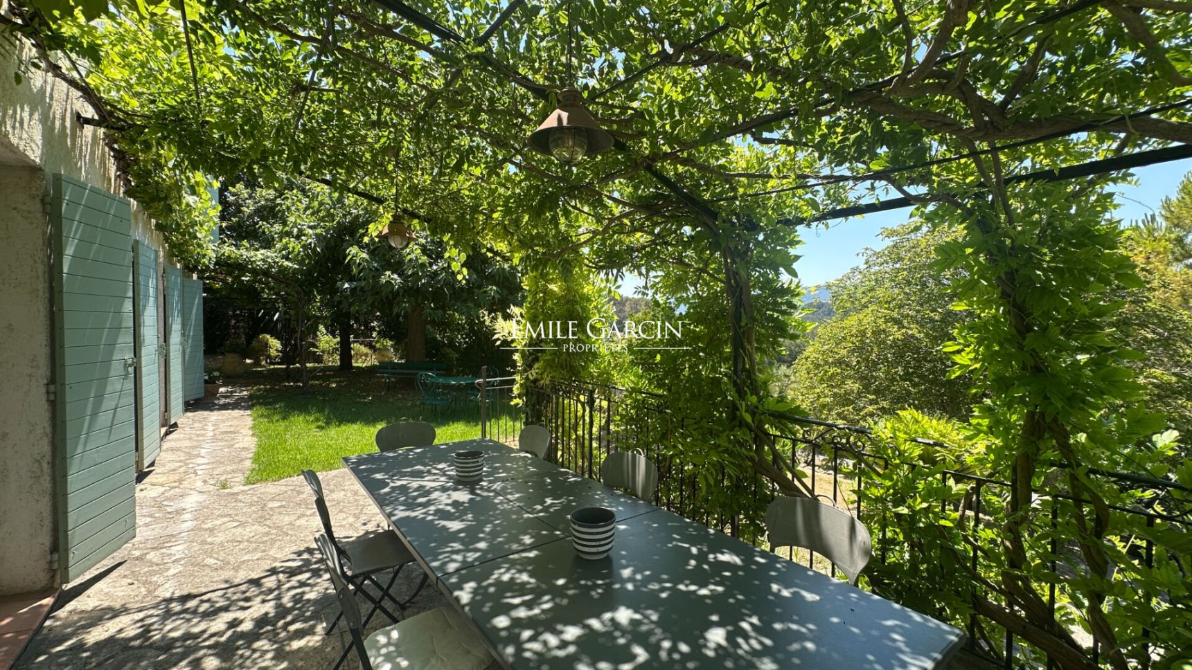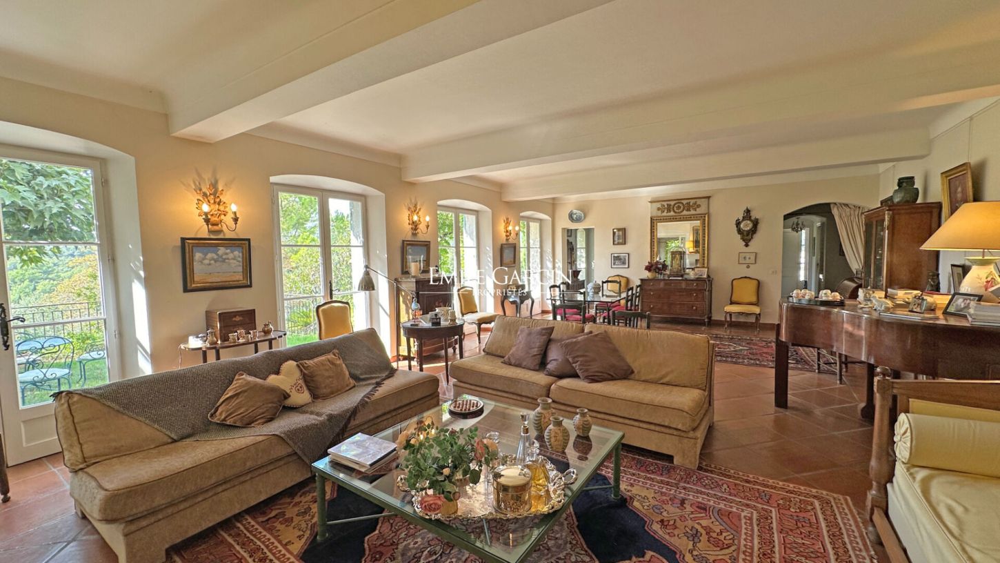 Cote d'Azur - Mougins. Delightful character property located on the hillside in a small secure domain. Boasting a panoramic view of the surrounding hills, this charming property is bathed in natural light throughout the day thanks to its triple aspect. With a surface area of approximately 220 sq.m spread over two levels, it has a ground floor composed of a spacious living room with fireplace, a beautiful family kitchen, a utility room and a home office. Each room backs onto the outdoor spaces and offers delightful views. Upstairs, you will find the master bedroom with its bathroom and toilet, plus three additional bedrooms and two bathrooms with toilets. The top floor houses a large attic space. Lovely terraced garden of approx. 3000 sq.m with superb flora, olive trees, several terraces and a Virginia creeper. Large parking area. Cellar of approximately 25 sq.m, Garage of approximately 35 sq.m. Potential to install a swimming pool. Freehold sale.