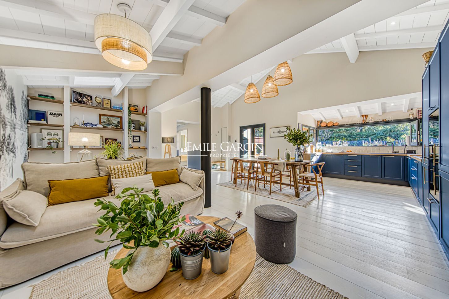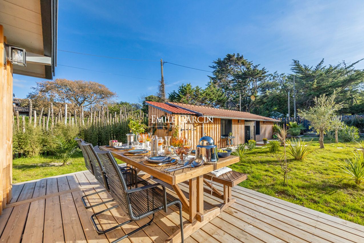 Located in unspoiled surroundings in the heart of Cap Ferret, just a short walk from Horizon Beach, this unique property presents a harmonious blend of nature and local architectural traditions. It presents approximately 135 sq.m of living area on 535 sq.m of landscaped grounds. This southwest-facing property offers a veritable a veritable oasis of calm with an interior design based around the principles of Feng Shui. The property comprises three cabins inspired by the Cap Ferret, which have been fully restored with high-end materials and meticulous attention to detail. The main house features an entrance leading to a spacious reception area with high ceilings and an open kitchen equipped with top-of-the-range appliances, as well as a bedroom and an elegant bathroom. The two other cabins offer an independent suite and two additional bedrooms, as well as a private terrace. Overall, the property comprises four bedrooms, two bathrooms with premium finishes, modern heating, private indoor parking and groundwork for the installation of an outdoor hot tub. It is available fully furnished, with carefully selected indoor and outdoor furniture. This property tells a story: designed for experiencing Cap Ferret to the fullest in unspoiled green surroundings, it is a rare gem that seamlessly blends charm, character and elegance.