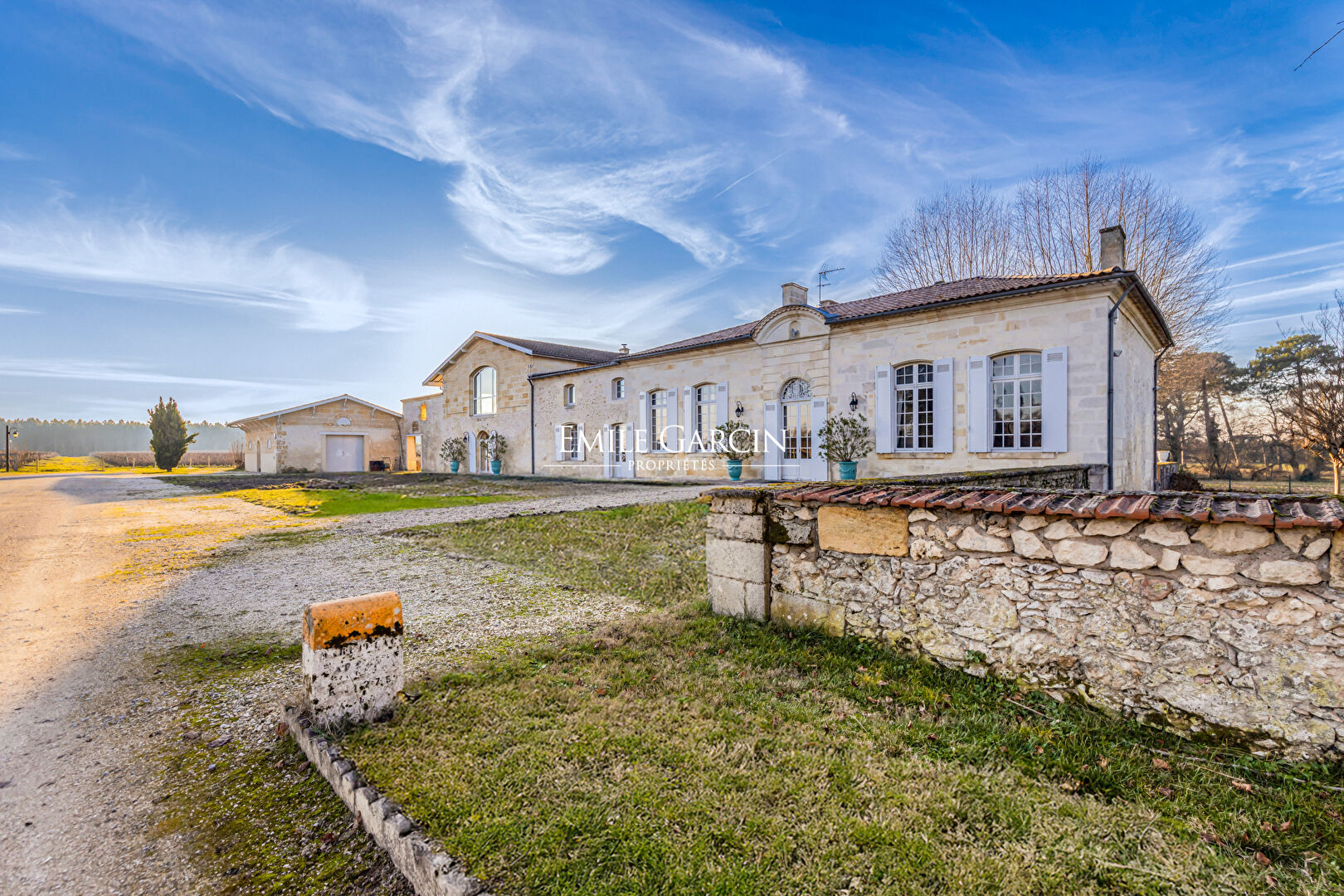 Located in the heart of the Gironde region among the prestigious vines of Bordeaux, this estate comprises a charming single-level charterhouse discreetly tucked away in vineyard surroundings. Sitting on vast landscaped grounds accessed via a tree-lined driveway, this secluded property exudes authenticity and tranquility. The charterhouse of approximately 595 sq.m presents understated yet elegant architecture, reflecting the character of historic 19th-century residences. The adjoining former wine cellar, now converted across two floors, harmoniously extends the main house and provides ample additional living space. All bathed in natural light, the reception rooms and five bedrooms generously overlook the grounds, creating a seamless flow between indoors and outdoors. Every nook and cranny seems designed to savour the tranquility and gentle pace of life characteristic of grand estates. An annex of approximately 80 sq.m offers two additional bedrooms, ideal for hosting guests or developing independent accommodation. The outbuildings, including a large garage, enhance the functionality of the estate while preserving its architectural harmony. The verdant grounds extend over approximately 2 hectares with the possibility of expansion to 4 hectares. Crossed by a stream and punctuated by an Eiffel-style bridge, they boast stunning views inviting total immersion in the surrounding countryside. The swimming pool blends discreetly into this backdrop, overlooking the vineyards and mature trees. This property embodies the rare pace of life in the heart of the Bordeaux wine region, combining heritage, elegance, a spacious interior and an exceptional vineyard setting. A secluded estate, perfect for all lovers of authenticity and inspiration.