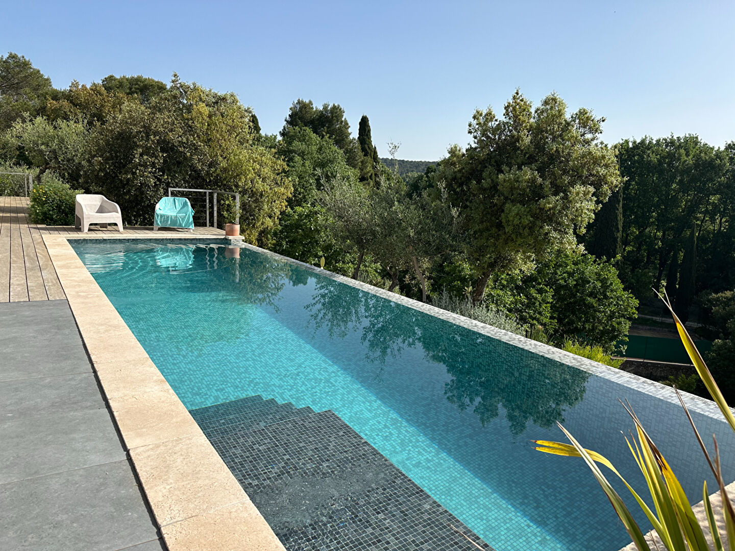 Located on the hillside in Uzès, this beautiful modern house presents a high-quality finish and stunning views. Peacefully situated at the end of a cul-de-sac, a discreet gate opens onto a paved driveway leading to the house, which is spread over two levels. The first comprises the reception area of ??approximately 85 sq.m, with a dining room/kitchen area opening through large sliding doors onto a beautiful terrace. Near this area, there is a living room with central fireplace, also backing onto a terrace with a large holm oak tree. On this same level, you will find the master suite with its dressing room and full bathroom. On the lower level, there are three additional ensuite bedrooms, two of which back onto a terrace and the pool. Near this sleeping area, there is an intimate billiards room and a beautiful wine cellar nestled into the rocks. Additional facilities at this level include a gym, a technical room, a workshop and a garage. Outside, a large terraced garden features several relaxation spaces, a pétanque, area court, a cave, a herb garden and a bread oven. This house is the ideal setting for spending good times in the company of family and friends.