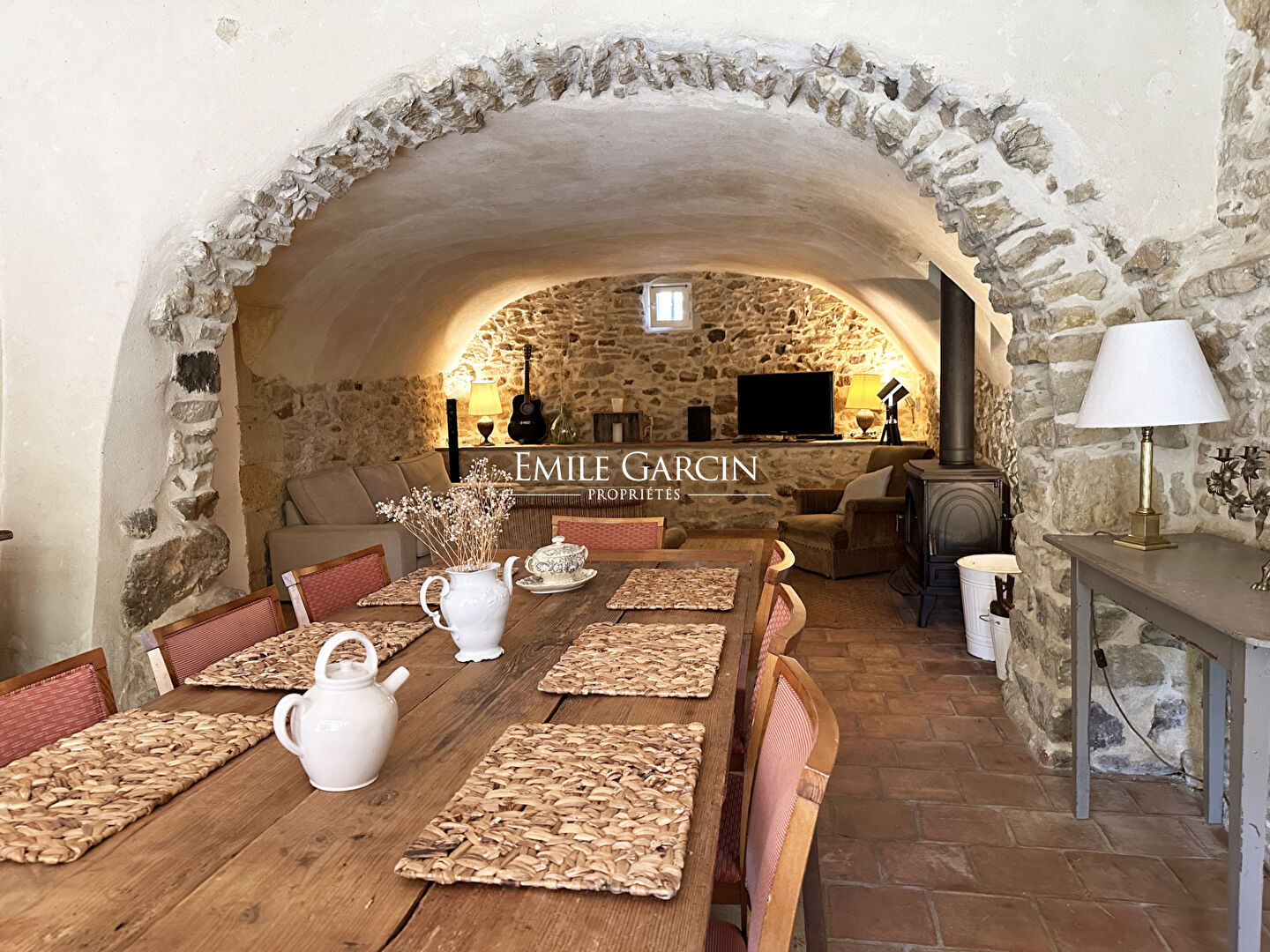 Located in a magnificent bucolic setting in the heart of a charming village in the Gard, this characterful farmhouse was originally built in the 17th century before being extended in the 18th century. Presenting a living area of ??approximately 228 sq.m, it features a lush garden with a swimming pool, a well and a magnificent fig tree. On the ground floor, the entrance leads on the left to a kitchen with vaulted ceiling and a spacious billiards room. Nearby, there is a living room with wood burner backing onto the dining room, which opens out onto a delightful covered terrace overlooking the garden. You will also find a converted stable on this level, offering ample storage space or an additional bedroom. Upstairs, there are three bedrooms and two bathrooms with toilets. This level also features a beautiful space of 35 sq.m, which could be converted into a master suite, a workshop or even a separate gîte-style accommodation. The top floor houses two additional bedrooms, perfect for accommodating family or friends. This charming farmhouse stands out for its authenticity, generous interior and peaceful setting. A rare find for lovers of stone architecture and nature.