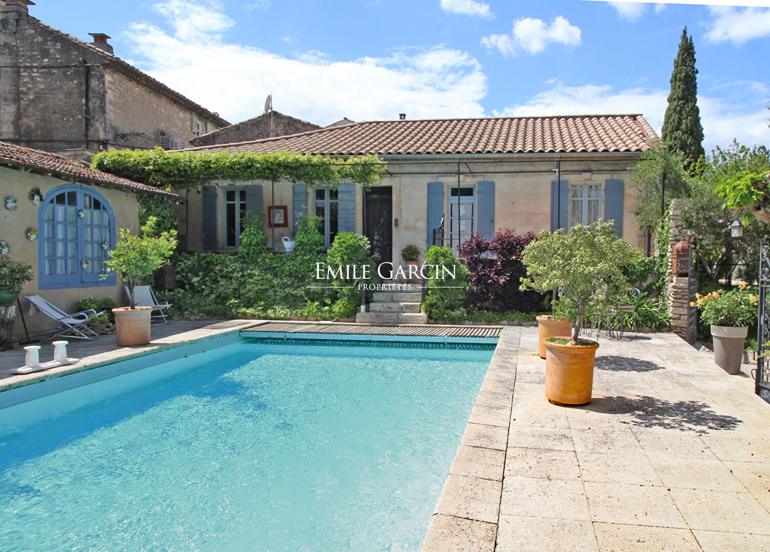 A rare and charming property located in a peaceful setting in the heart of Saint-Rémy-de-Provence, not overlooked and close to all local amenities and the town centre. Arranged around a leafy garden of approximately 1000 sq.m with a swimming pool, the property comprises three independent dwellings: Main house: double living room with fireplace, open kitchen, two upstairs bedrooms, home office, two bathrooms, balconies; Studio/workshop: bright with large windows, two bedrooms, one bathroom; Converted mazet (dating from 1860): one bedroom, living room, kitchen, bathroom. In need of renovations and other possible modifications.