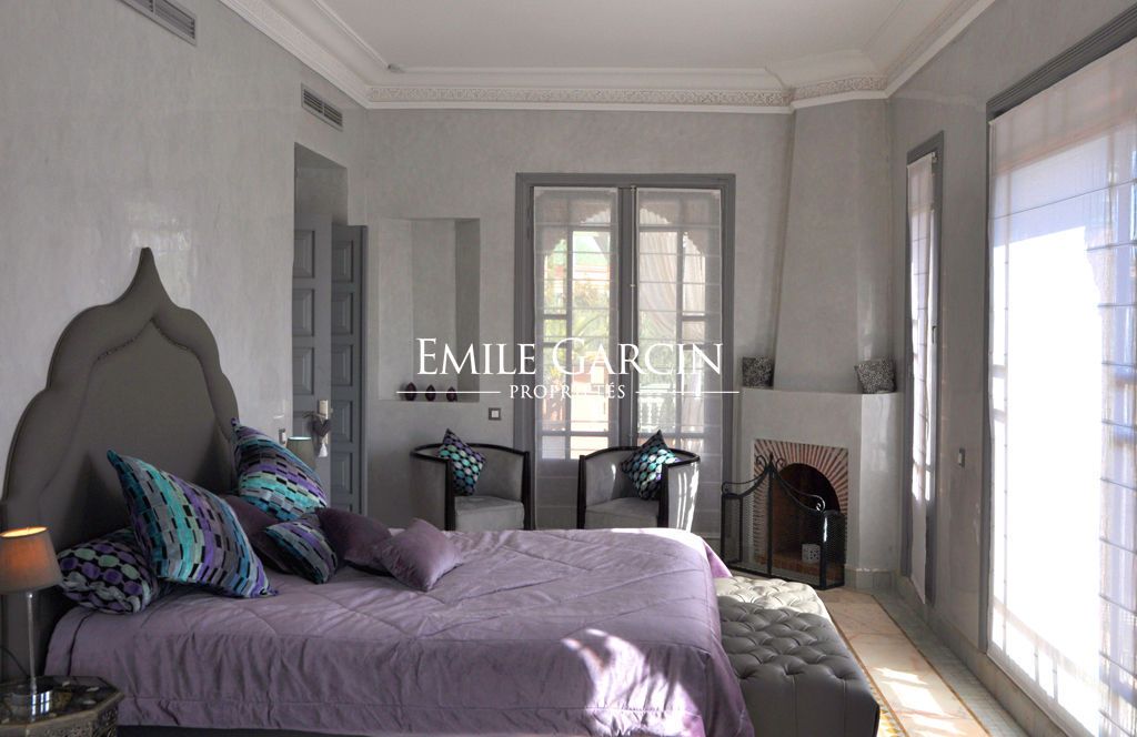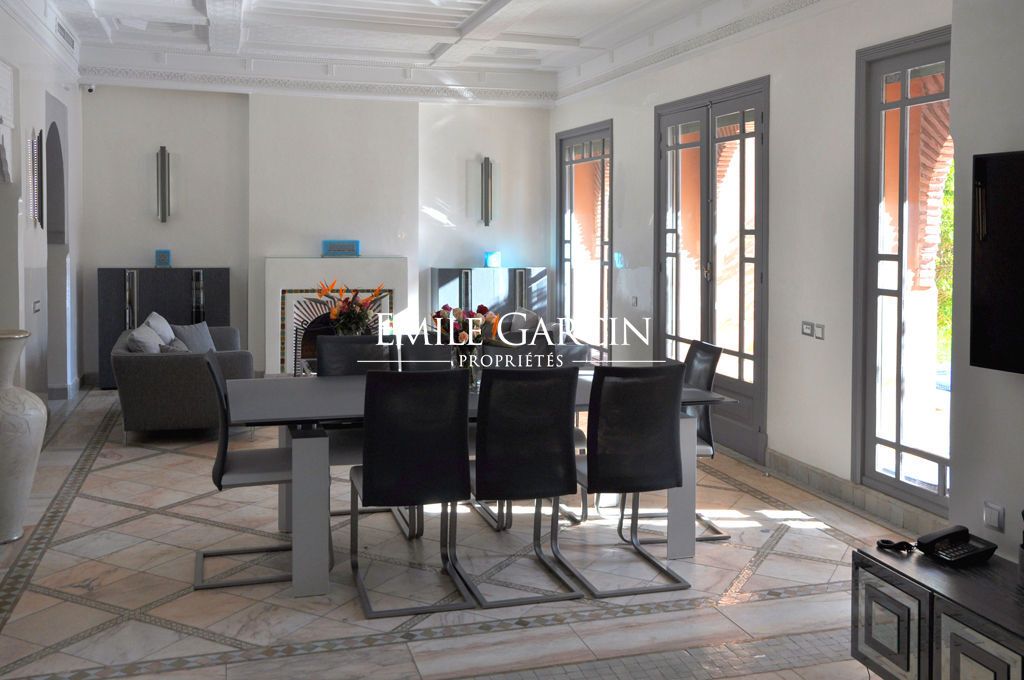 Idyllically located on a secure development close to the Palmeraie golf course, this fully air-conditioned and understatedly decorated property presents four fully-equipped bedrooms. A swimming pool opposite the terrace (potential to be heated in winter). The serene lush gardens are a haven of peace. Ideal for a stay with family or friends. Maximum capacity: 9 people (8 adults and 1 child). Rates from 625 EUR / night.