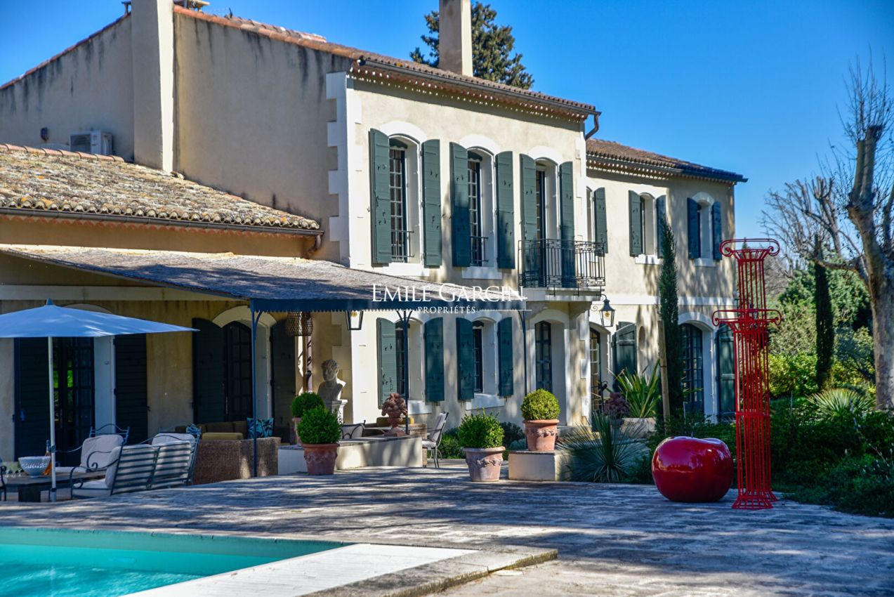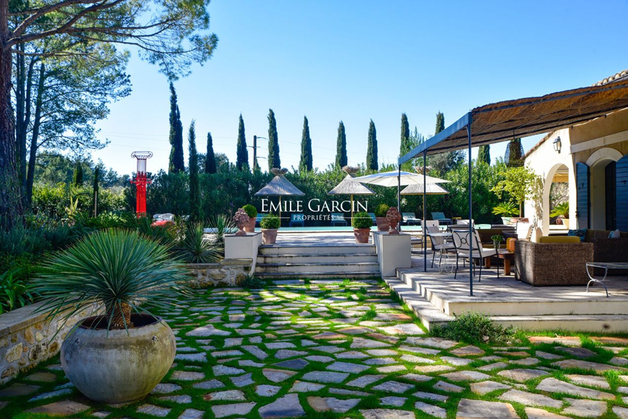 An endlessly charming Provençal property located 5 minutes from Saint-Rémy-de-Provence. This house sits on 8,000 sq.m of private grounds adorned with pine trees, olive trees and cypresses. Bright and fully air-conditioned, the house makes the perfect setting for a holiday among family or friends. 5 bedrooms, 4 bathrooms. Swimming pool (15 x 6m). Tennis court. Several terraces.