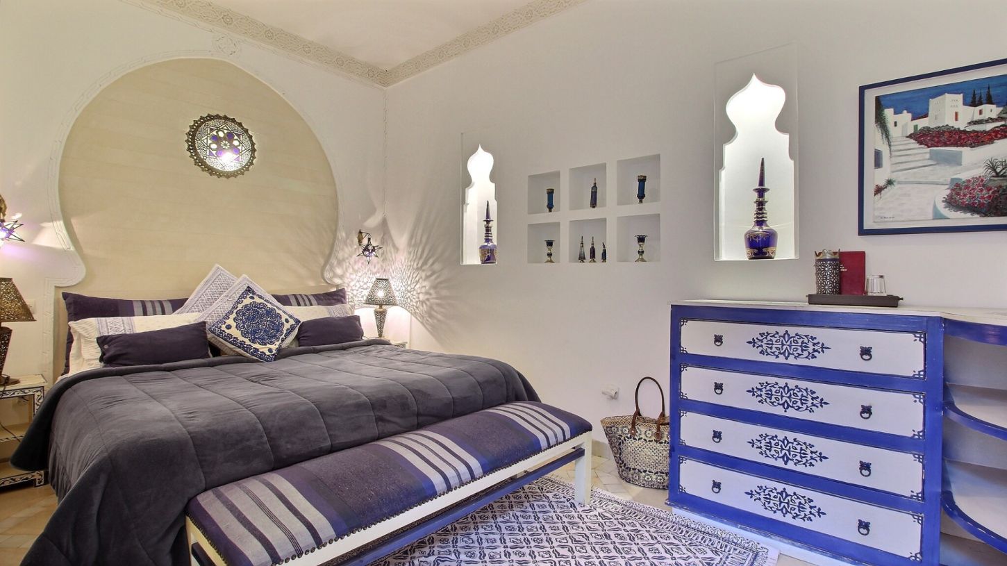 Idyllically located in the Berrima district of downtown Marrakesh, this 8-bedroom riad serves as ideal accommodation for a holiday with family or among friends. The entire property is fully equipped with state-of-the-art facilities and modern levels of comfort. All the bedrooms have their own television set and ensuite bathroom, while some also boast lounge facilities, perfect for a spot of rest and relaxation. Spa area with massage room and hammam. From 800 EUR / night.