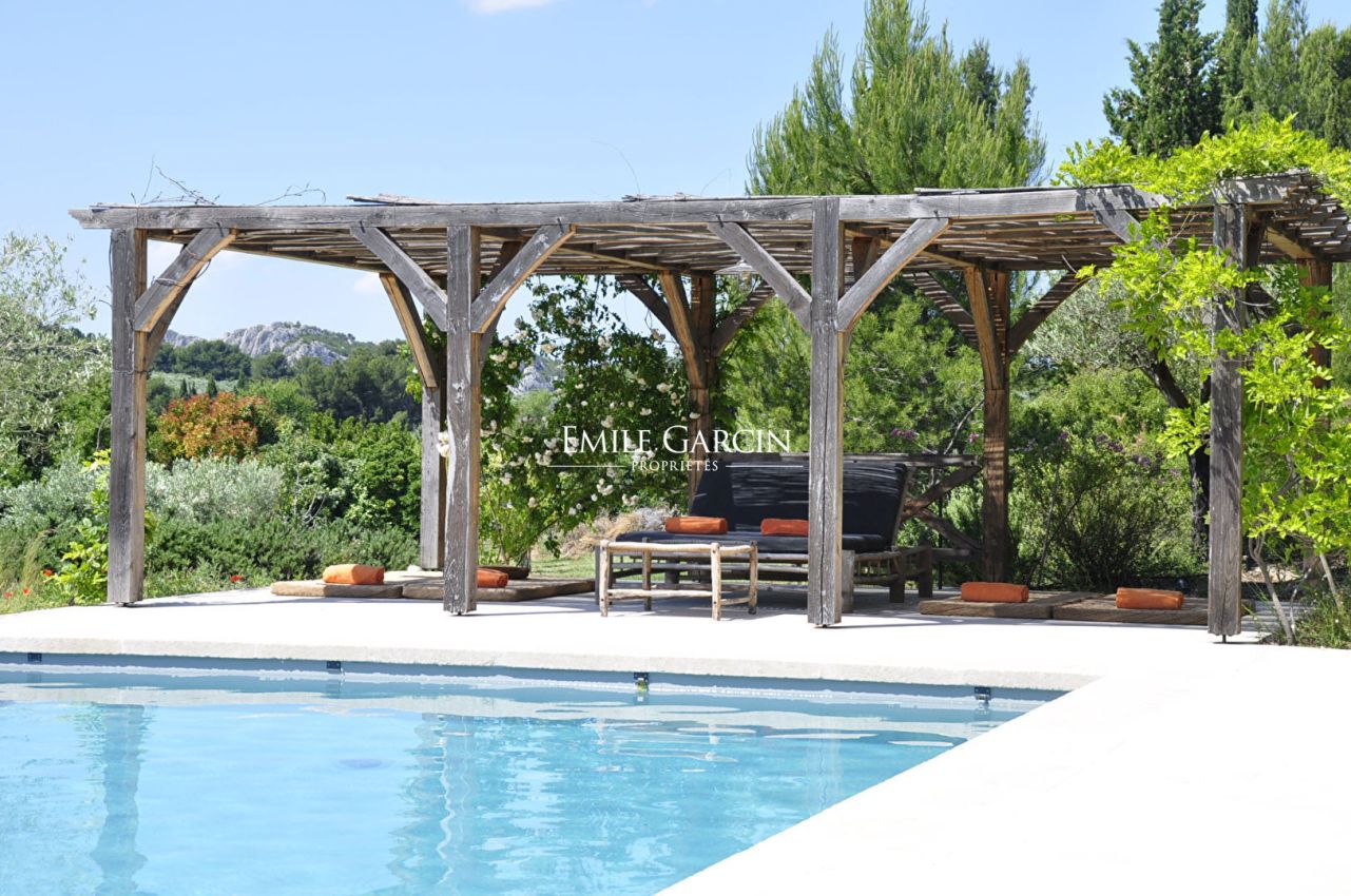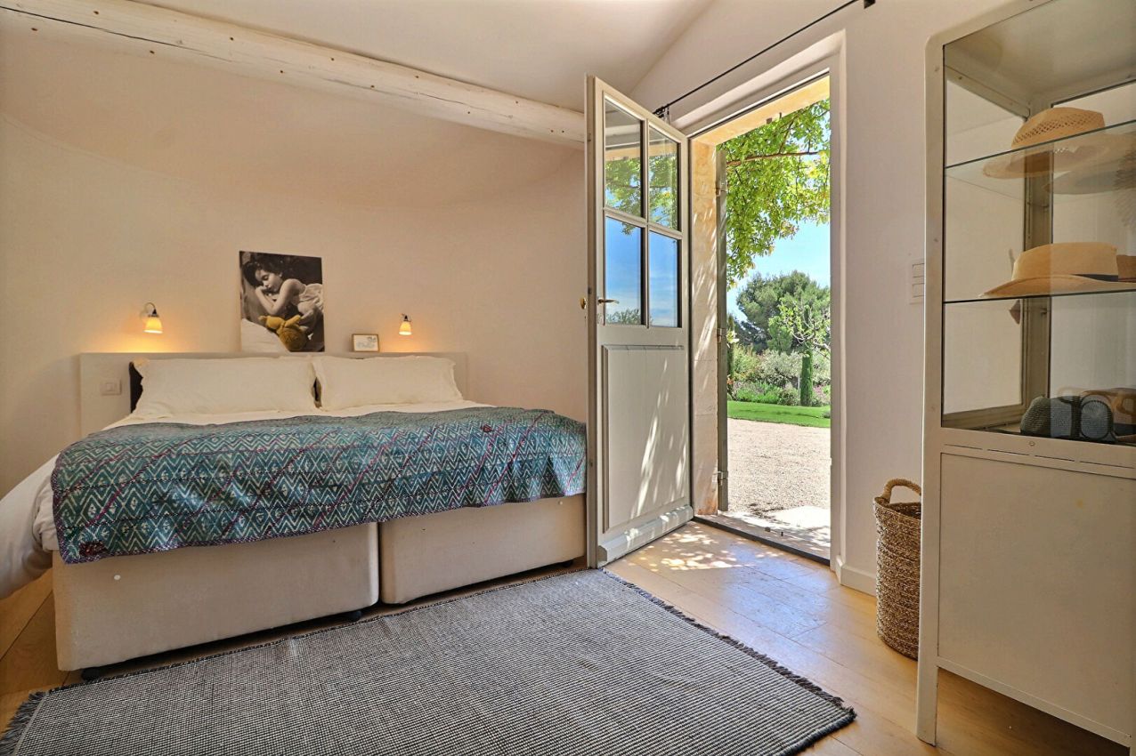 Magnificent Mas, tastefully decorated offering 7 air-conditioned bedrooms (including 4 outside the main house) and 7 bathrooms. Dining room, equipped kitchen and a large bright living room. The terrace and the heated swimming pool give us a panoramic view of the Alpilles.