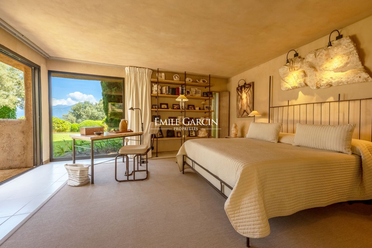 This magnificent property extends over 17 hectares of land and offers a unique view of the sea, the Gulf of Saint Florent, the village, its port and citadel, Cap Corse and the Agriates desert. Sea access in just 10 minutes on foot via a small road. The ideal setting for an excellent holiday with friends or family. 8 bedrooms, 7 bathrooms. All the bedrooms are air conditioned. Tennis court, large swimming pool of 235 sq.m. High quality services including an onsite chef, 7 days a week. Daily cleaning included.