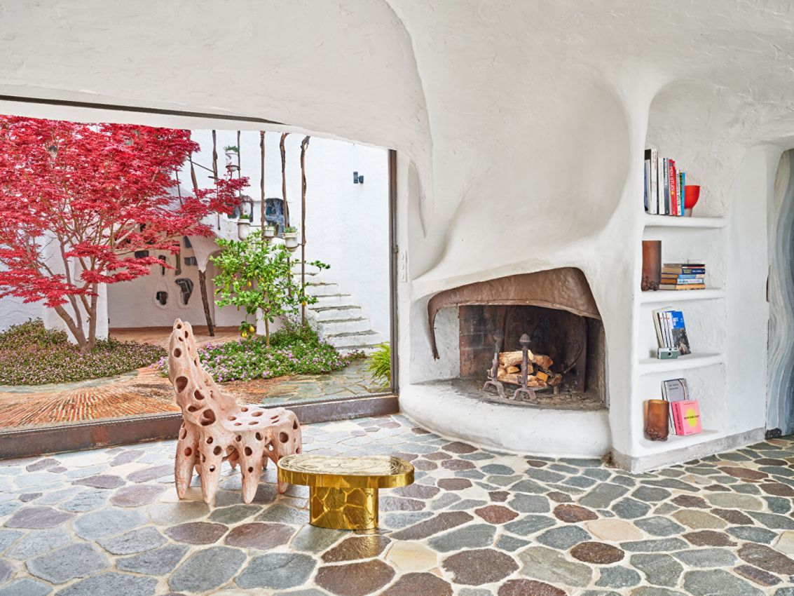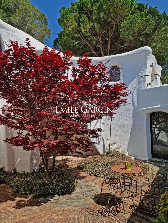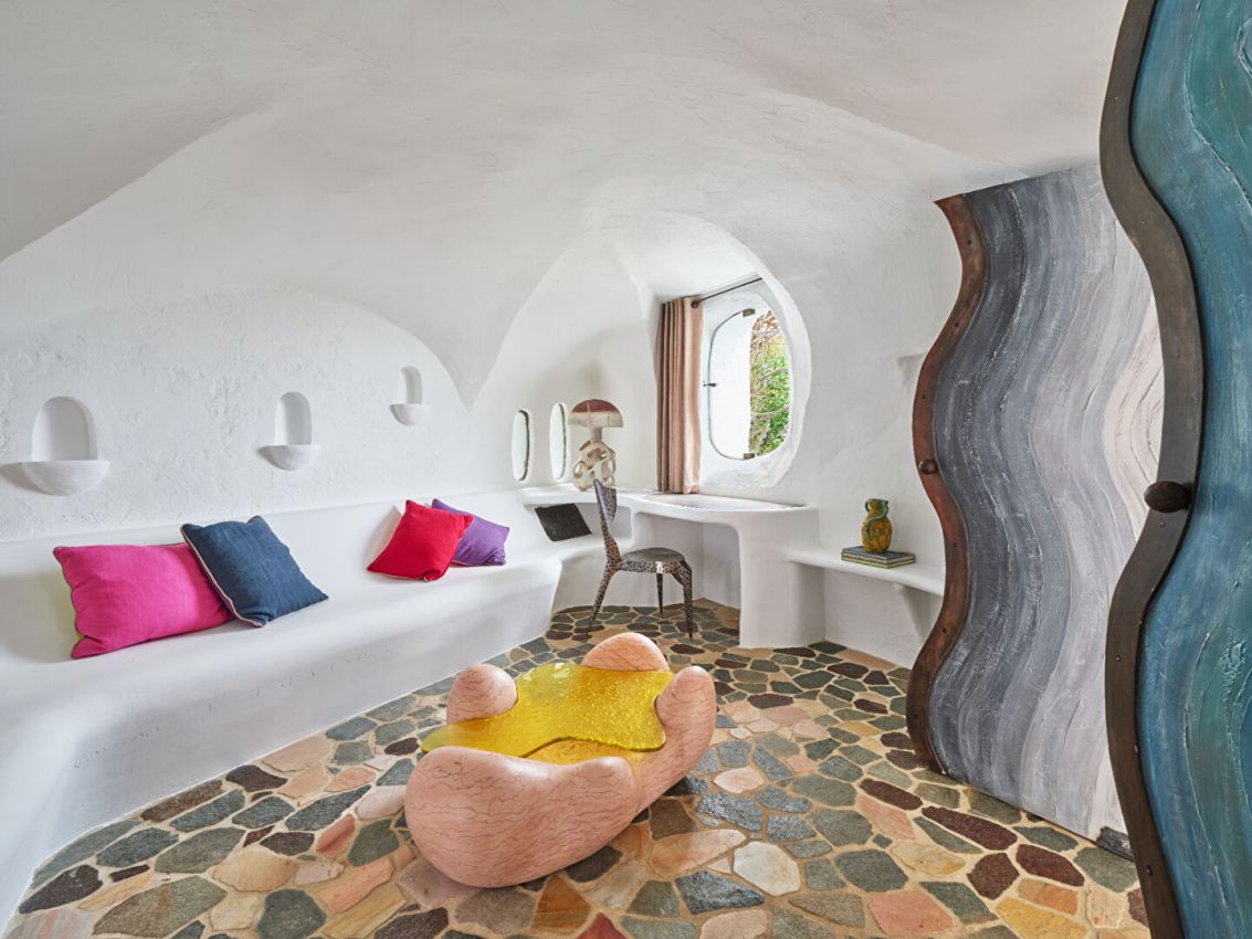 Sculptural Villa Overlooking Cannes A symphony of curves and materials, this exceptional villa, classified as a 20th-century heritage site, is one of the rare "landscape houses" envisioned by the visionary architect Jacques Couëlle in 1962. A true embodiment of organic architecture, it seamlessly blends with nature, embracing sculptural forms that defy the rigid lines of modernism to create a harmonious dialogue with its surroundings.