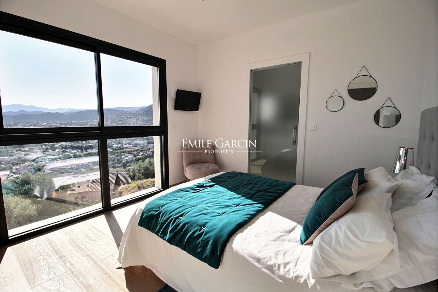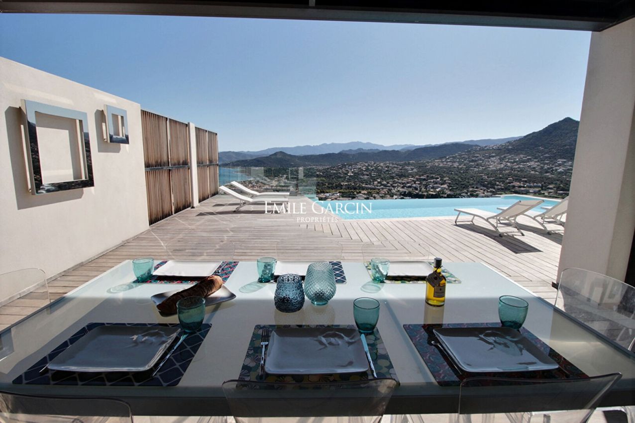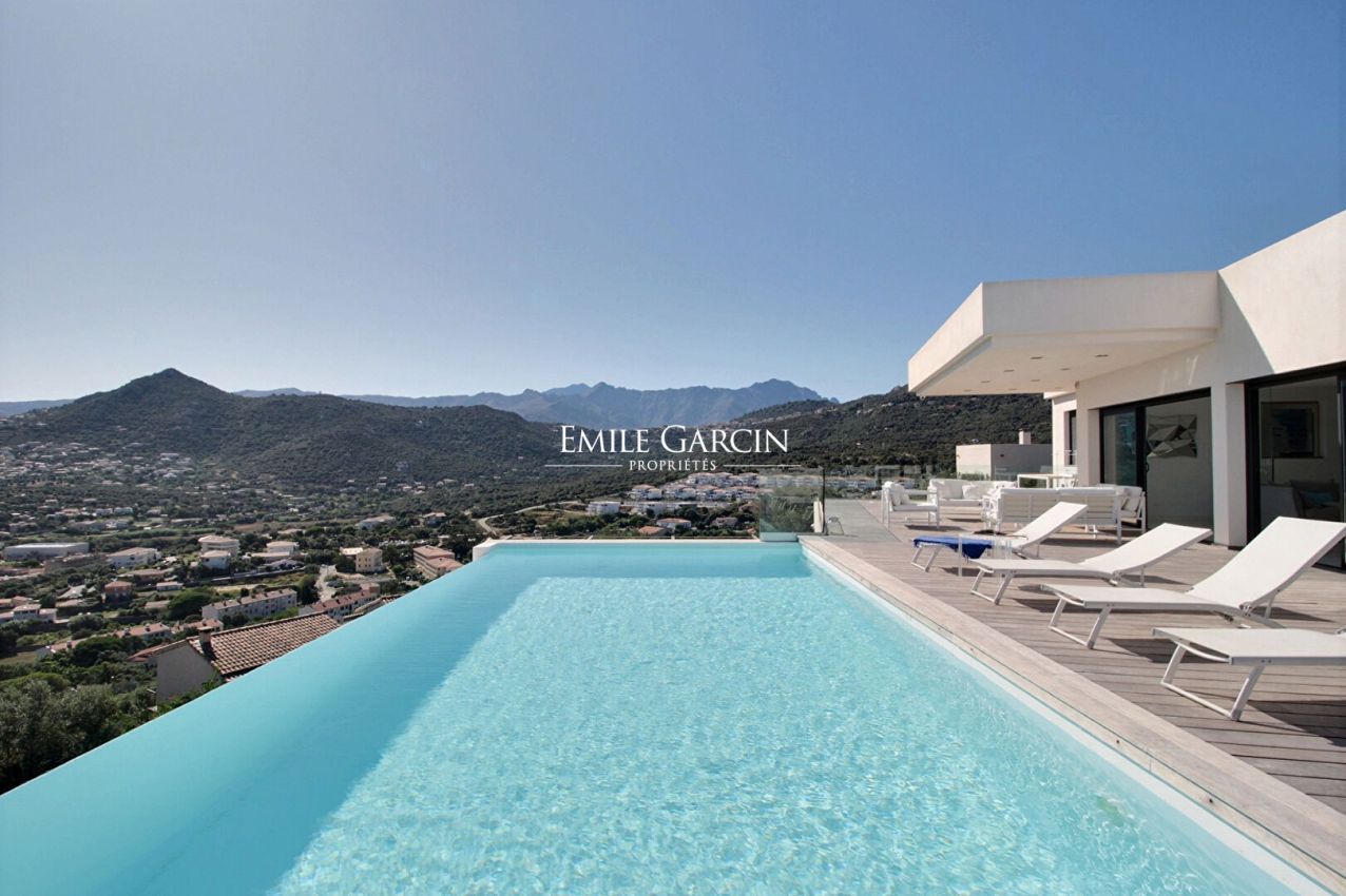 A stunning contemporary villa located in the upper reaches of the seaside city of Ile Rousse, the Villa Sopra Mare boasts exceptional views of the city and the Cap Corse. With its 5 bedrooms and 5 bathrooms, it can accommodate up to 10 people. Fully air-conditioned, fully equipped, heated infinity pool. Just a 15-minute walk from the town and beaches of Ile Rousse.