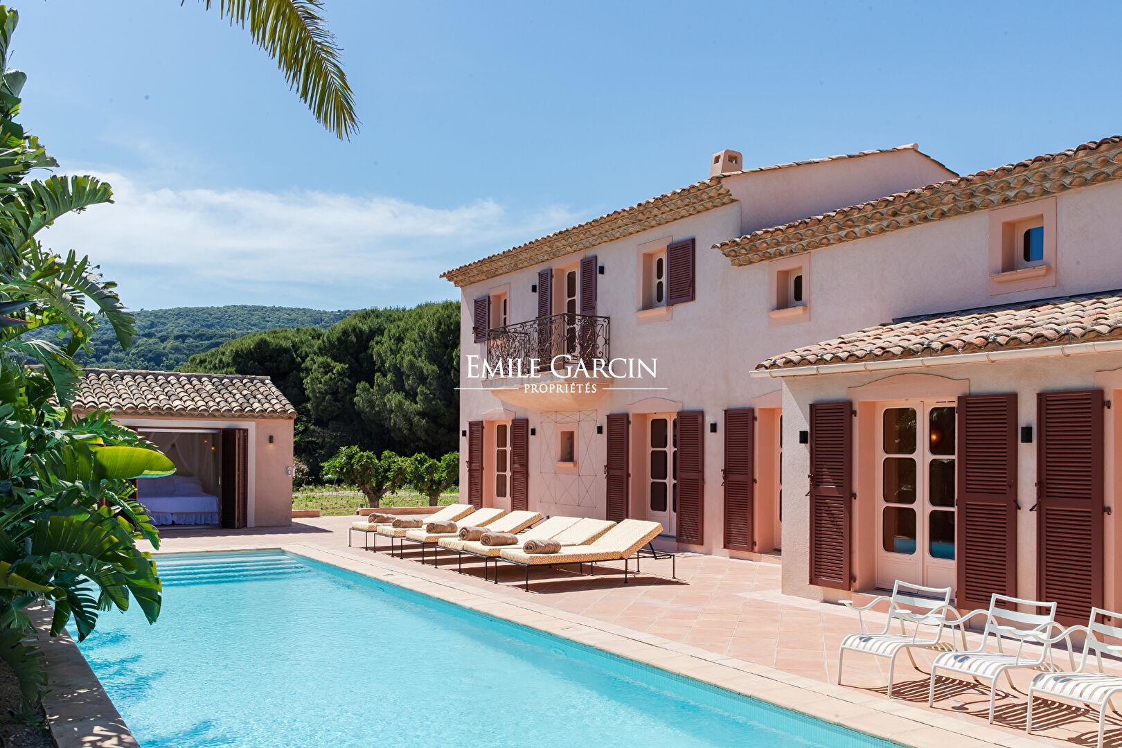 Near the beaches of Pampelonne, this elegant 270 sq m property sits within a 5,400 sq m plot planted with vines. It comprises five bedrooms plus a staff bedroom, offering ideal comfort. A 14 x 4 m swimming pool and various outdoor relaxation areas are also included. Sports equipment is available. Registration number: 83101000839HQ