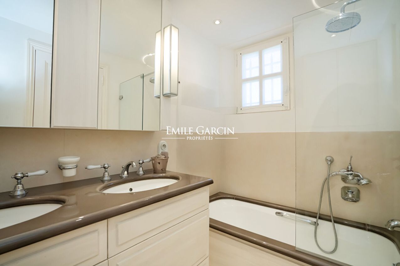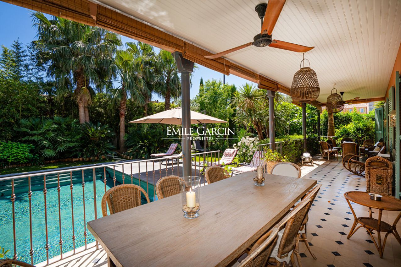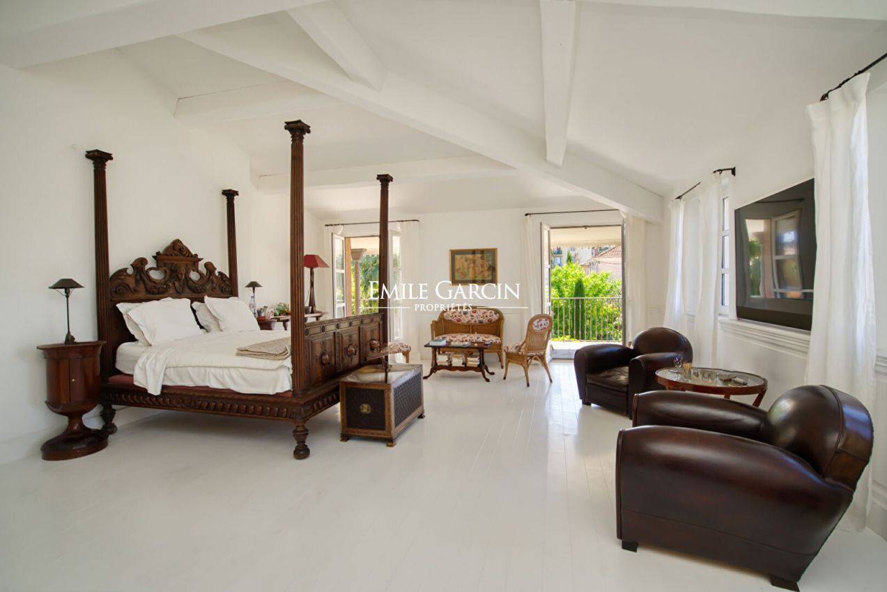 Ideally located a few steps from the Place des Lices, this rare villa for rent seduces with its generous volumes and its magnificent wooded garden, a true haven of peace in the heart of Saint-Tropez. Secure swimming pool (8x4m). It consists of 5 en-suite bedrooms as well as an independent apartment, offering comfort and privacy. Exceptional location - 5 bedroom apartment - Swimming pool - Green garden