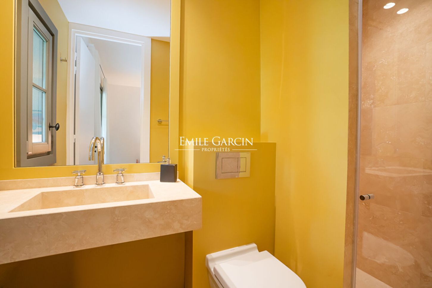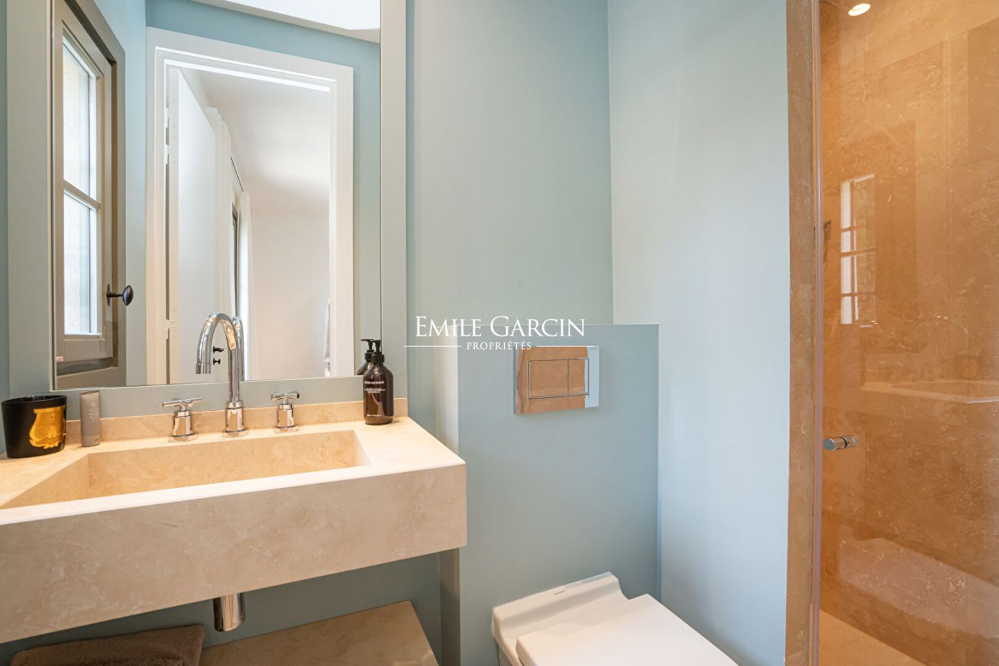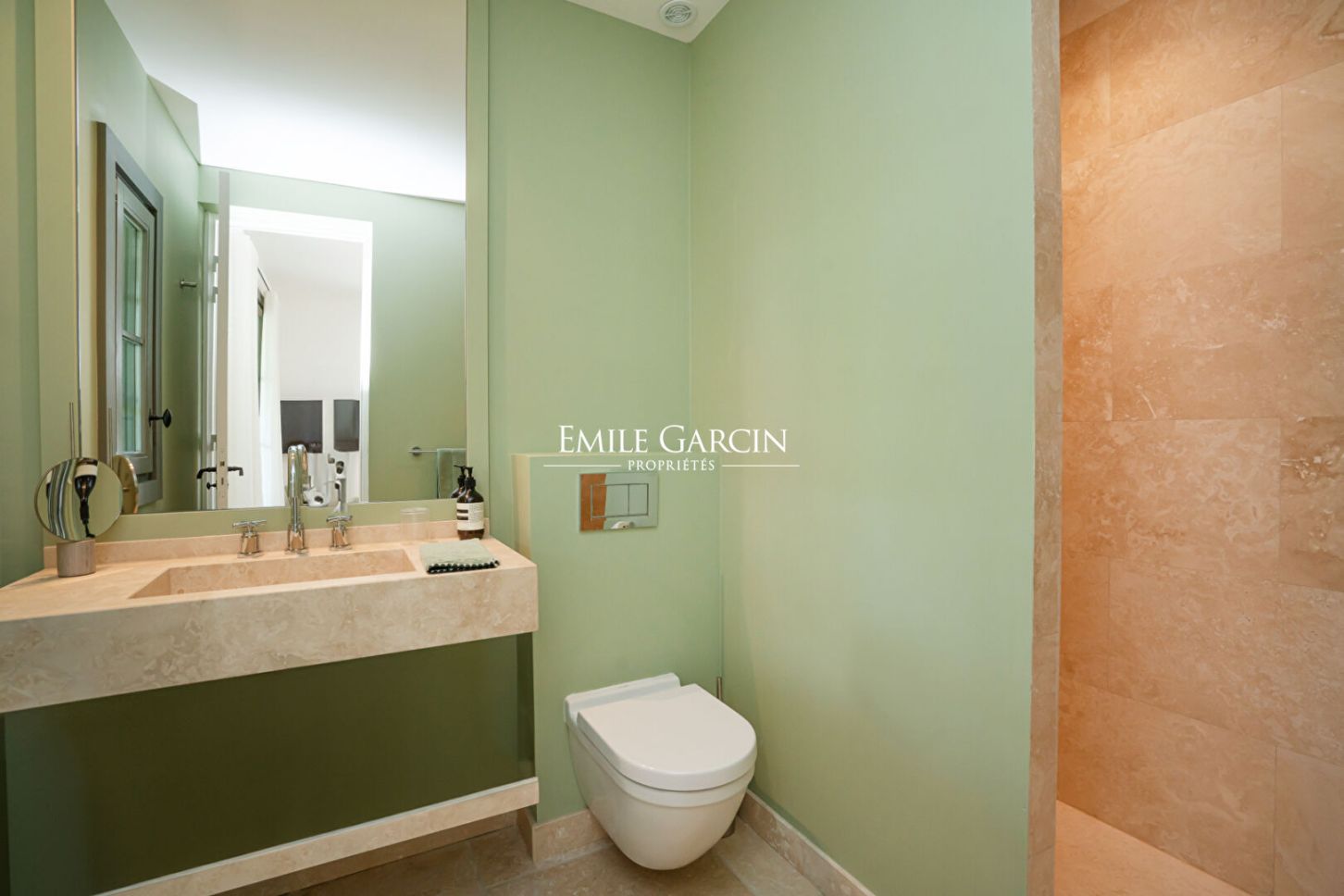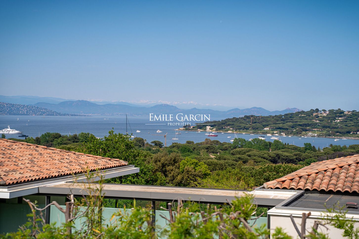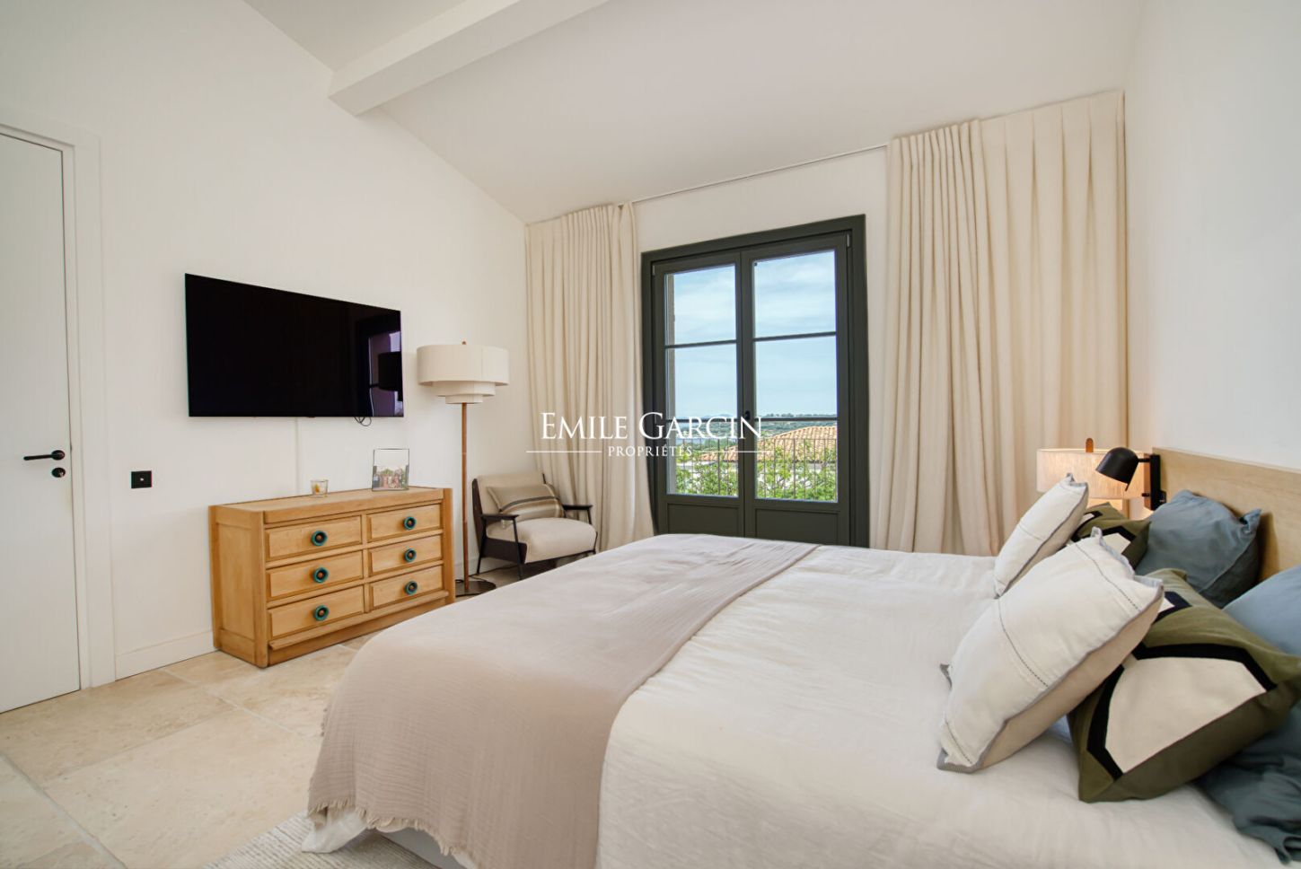 Between the legendary village of Saint-Tropez and the sunny beaches of Pampelonne, this elegant villa of approximately 220 sqm nestles in the heart of a 1,200 sqm landscaped garden. It offers five en suite bedrooms, a 15 x 4 meter heated swimming pool, and a sea view over the Baie des Caroubiers.