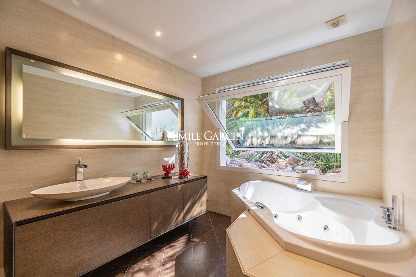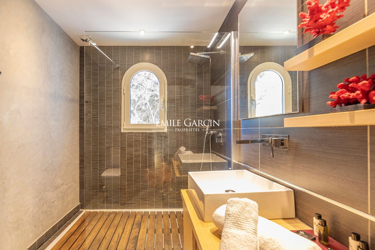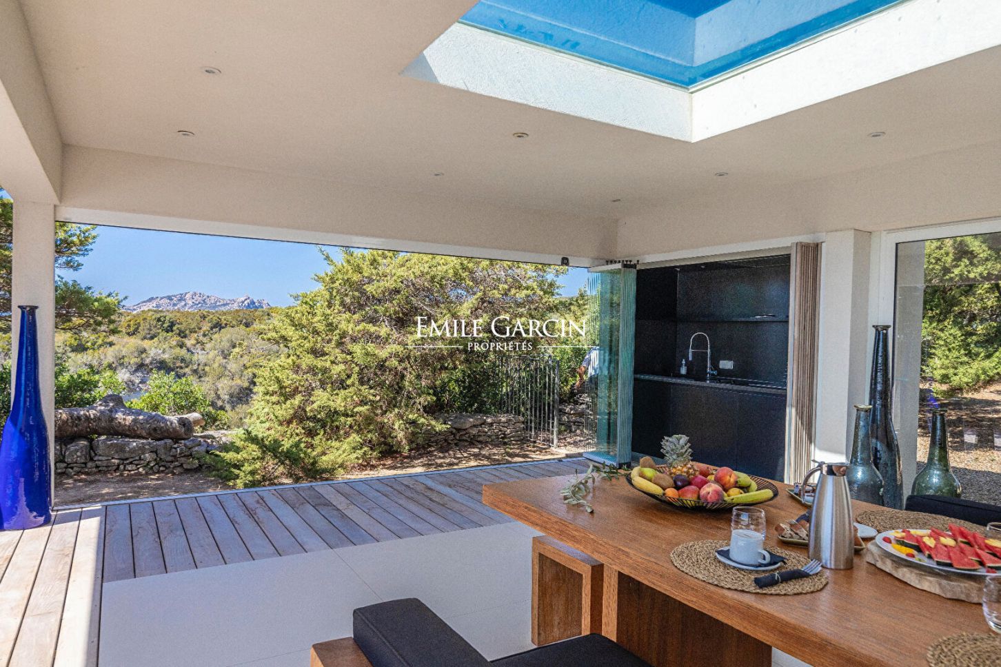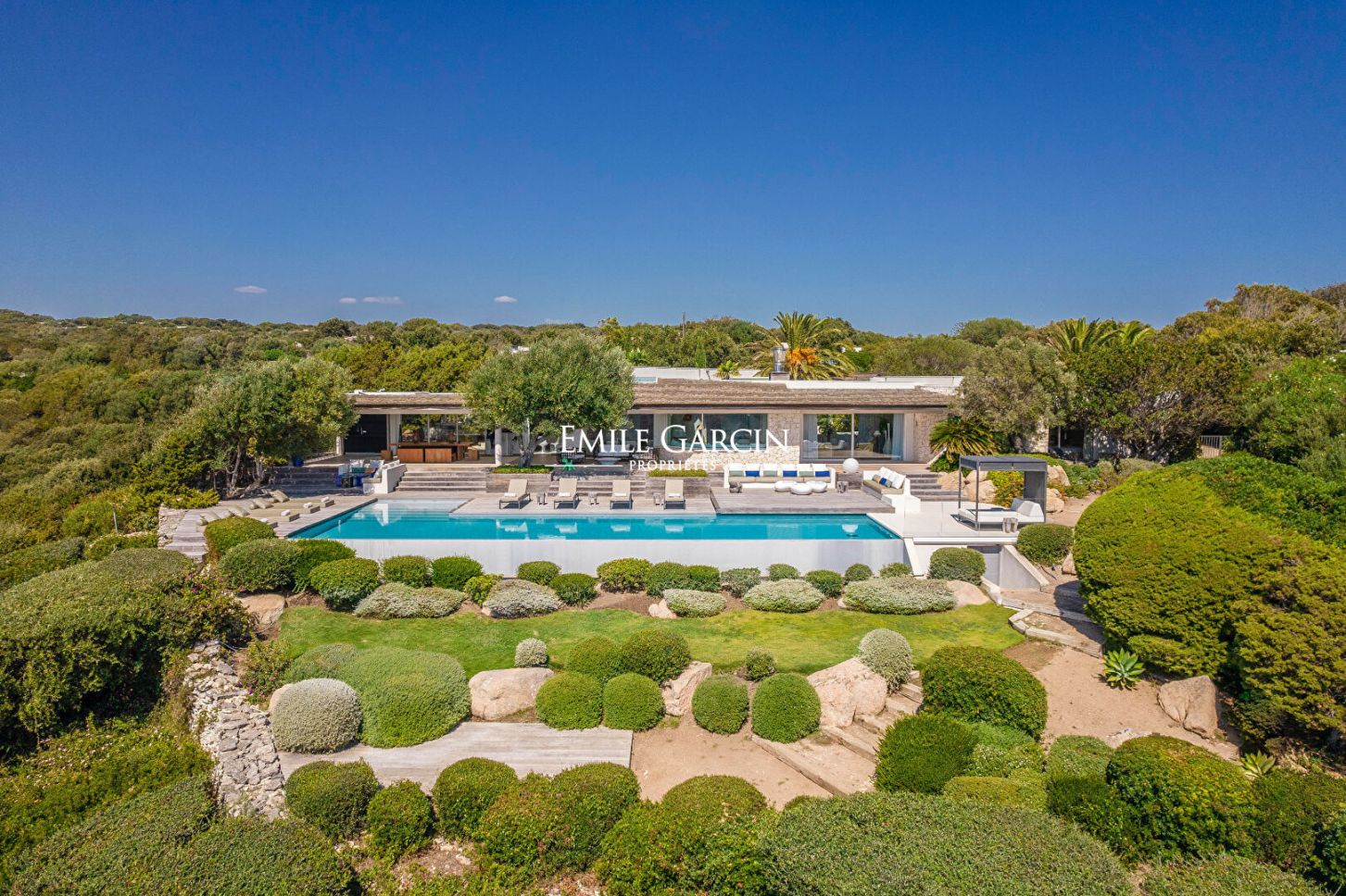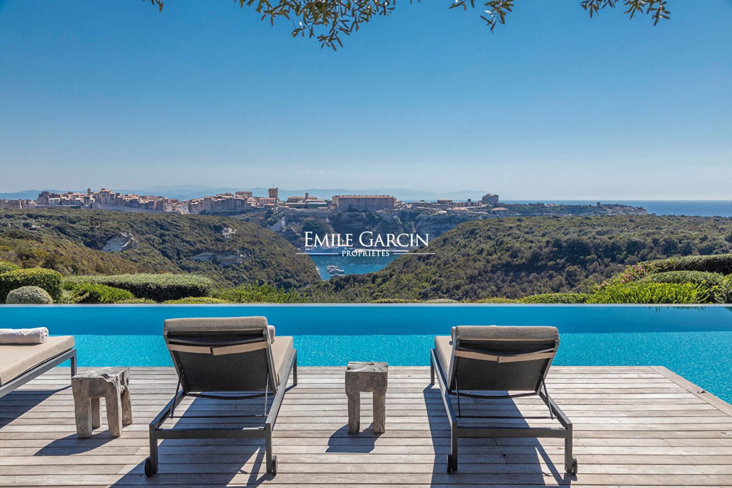 This magnificent 350 sq.m villa boasts an exceptional view of the port and citadel of Bonifacio. Sitting on 3000 sq.m of land planted with Mediterranean vegetation just a few minutes from the town centre and the beaches, it is a veritable invitation to rest and relaxation. The 18 x 4m heated infinity pool is equipped with counter-current swimming system. It is surrounded by a large wooden terrace of 250 sq.m with three shady lounge areas. There is an al fresco dining area with a plancha and a large wooden table for lunch in the shade. It can accommodate 8 people in great comfort across 4 air conditioned bedrooms and 4 bathrooms. The ideal setting to discover the south of Corsica and its superb beaches. Beach: 10/15 mins. Figari Airport: 20 mins. Bonifacio: 5 mins (car), 15 mins (walking). Sperone golf course: 10 mins. This single-level villa presents a double living room backing onto a beautiful wooden terrace with breathtaking views of Bonifacio. It includes a TV area and a lounge area separated by a fireplace, as well as a dining room. There is also a fully equipped open kitchen. The first (master) bedroom is equipped with a 160 cm double bed, a full bathroom (shower, bathtub), a separate WC, a large dressing room, a TV and a small private terrace. The other three bedrooms are located on the other side of the villa. These bedrooms are equipped with 160 cm beds, TV sets and a private bathroom with toilet. All the bedrooms have a terrace and overlook the garden. They are all air conditioned.