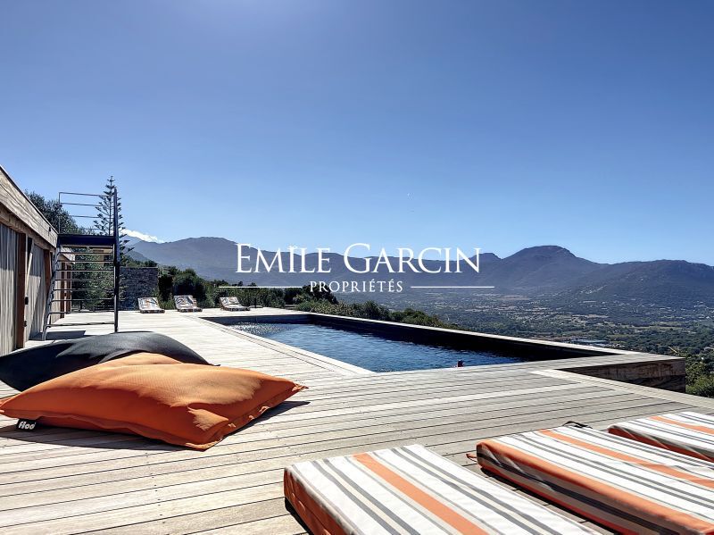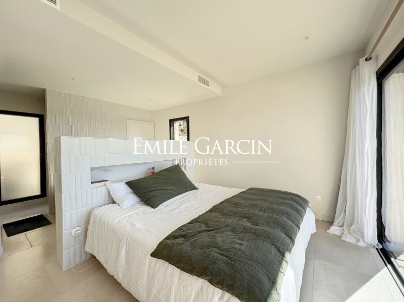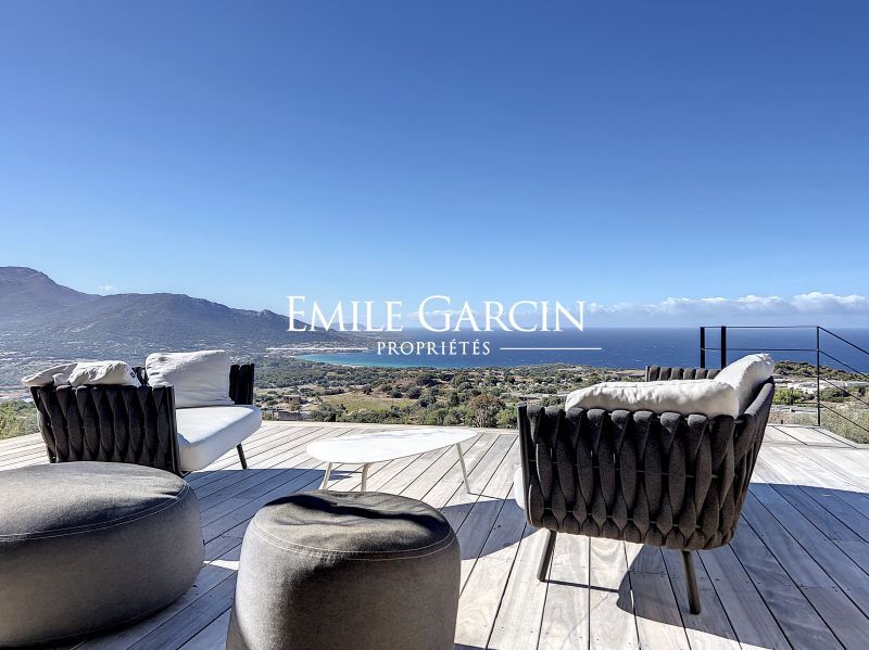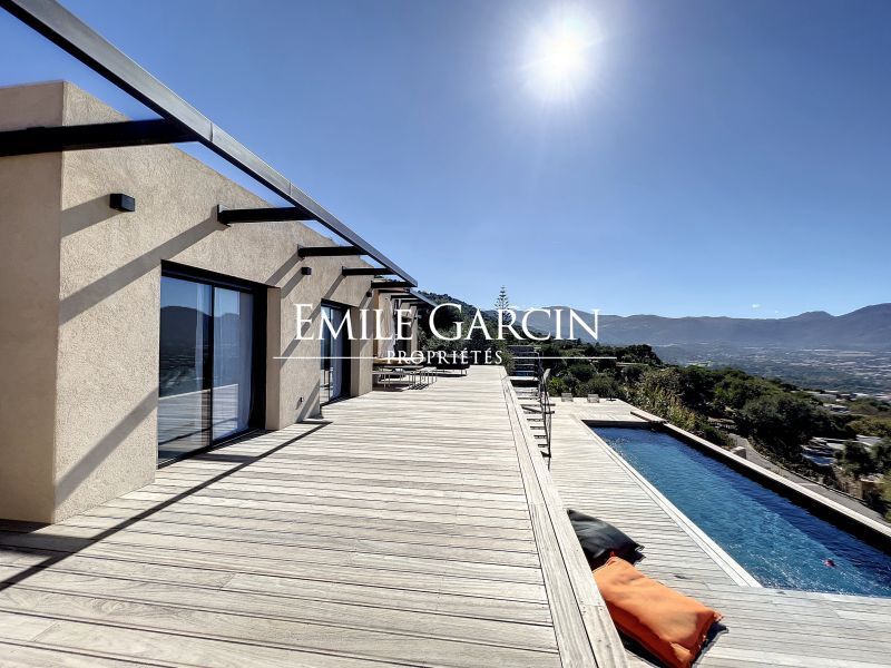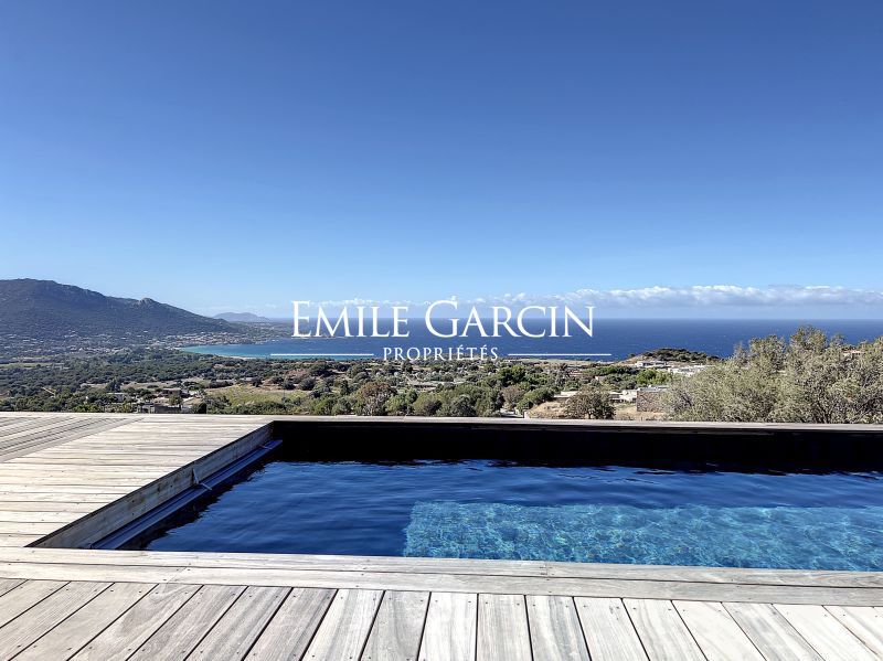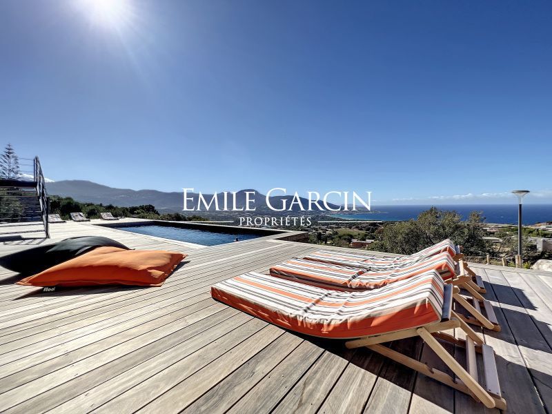 Modern new-build villa. Fully air-conditioned. 4 bedrooms and 4 bathrooms. Located on the hillside in Algajola Bay, the property overlooks the sea and enjoys a stunning panoramic view and magnificent sunsets. Heated swimming pool (10 x 3m) secured by an electric cover and surrounded by decking equipped with deckchairs. The perfect setting to enjoy views of the seafront and mountains. Cleaning services included at set times. Calvi Airport: 20 mins. Ile-Rousse: 10 mins. Algajola and Ghjunchitu beaches: 10 mins.