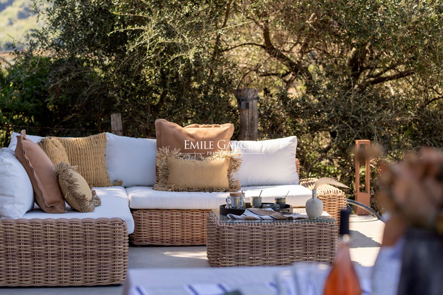 Typical period Corsican residence, fully renovated in an atypical architectural style combining the charm of stone and the modernity of raw concrete. Idyllically located a hectare of magnificent private grounds just 5 minutes from the seafront and the centre of Propriano. Sleeping capacity of 6 people (3 bedrooms, 3 bathrooms). The ideal setting for rest and relaxation. Centre of Propriano: 5 mins. Baracci beach: 5 mins. Ajaccio airport: 1h10. Cleaning services at set times during during your stay, including pre-departure cleaning. Additional services: air conditioning, swimming pool, pétanque area, vegetable garden, elevator.