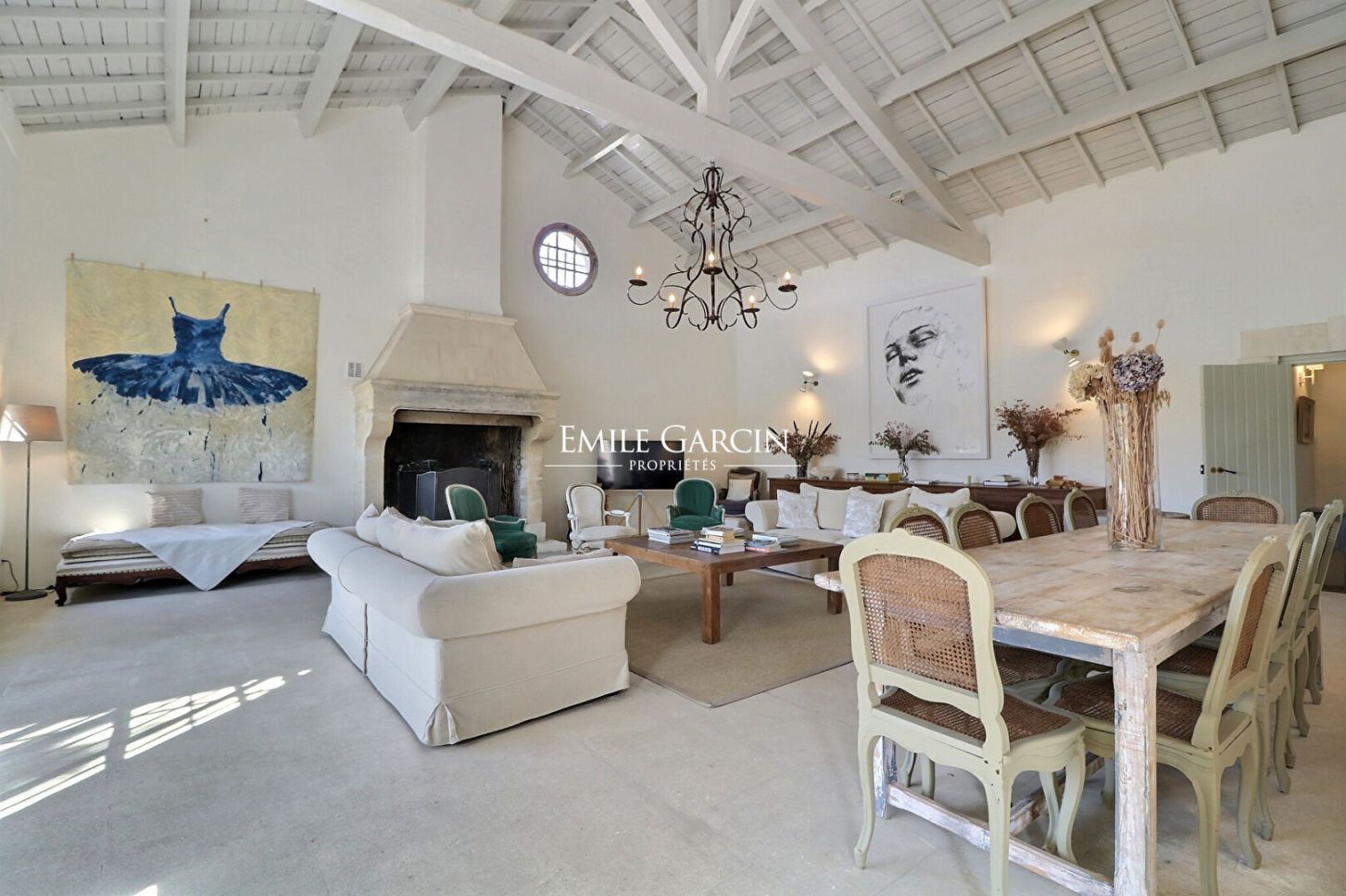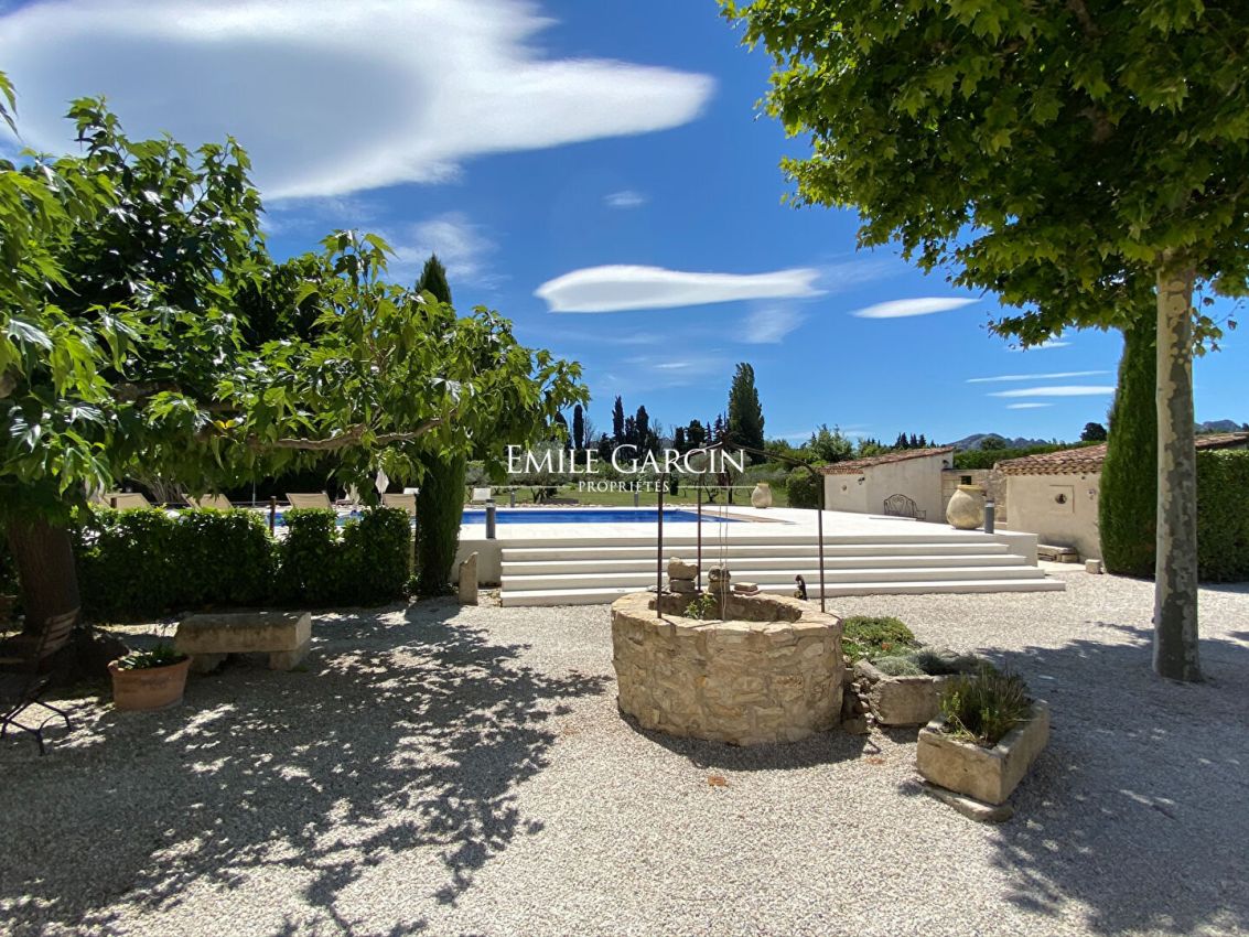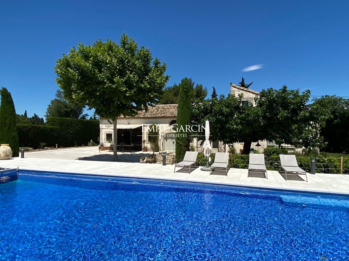 A few minutes from the village of Eygalières, set on 8000 m², this restored Provencal farmhouse of 320m² offers a sublime view of the Alpilles. 7 bedrooms, 6 bathrooms, air conditioning. Heated swimming pool 15m x 7m.