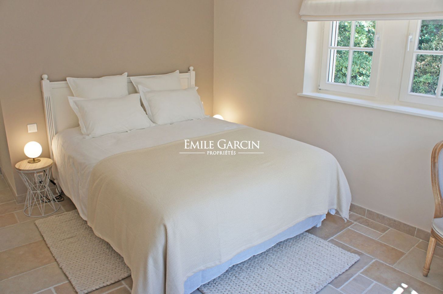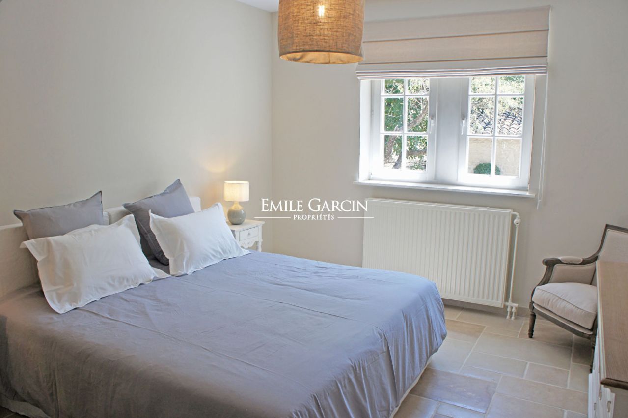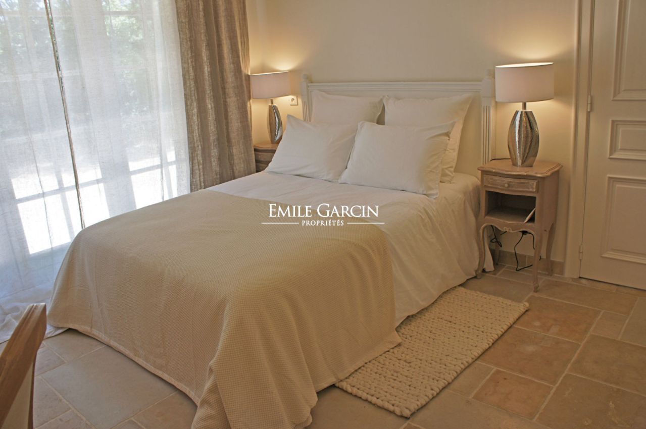 At the foot of the Alpilles, in a peaceful setting, this fully restored farmhouse offers a spectacular view. 6 air-conditioned bedrooms 2 of which are in a separate annexe and 4 bathrooms. Heated saltwater pool 15 mx 6 m secured by an electric cover. Pool house. Fitness room.