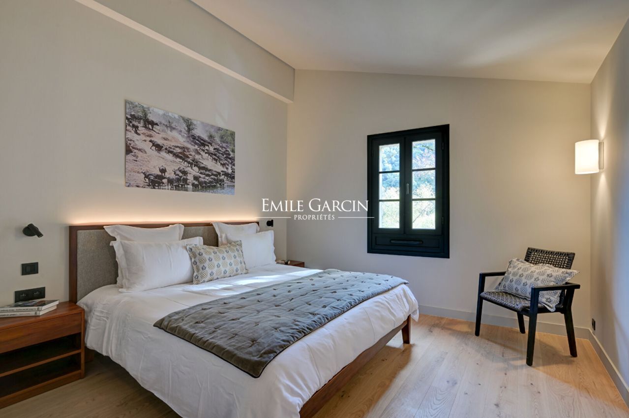 Located 200 metres from the centre of Entrecasteaux in the heart of the Provence Verte region, La Bastide de la Bresque is a converted 19th-century mill with a new 220-sq.m house. The property sleeps up to nine people across four suites. Its outstanding facilities include a heated pool with counter-current swimming system, shady terraces, a fully equipped kitchen, a garage and an electric vehicle charging station. Tucked away peacefully on the banks of the Bresque River, close to Cotignac and the Verdon region, it offers the perfect blend of authentic charm and high-end finish. There is also the option to rent a 90-sq.m reception room (formerly the wine press), which would make the ideal setting for evening gatherings with friends or wine tastings.