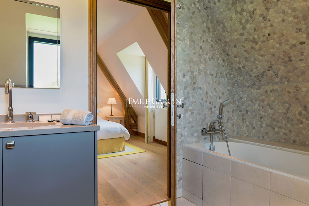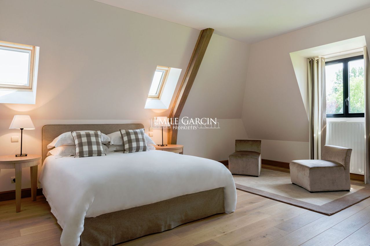 Located in Vauville on the outskirts of Deauville, Emile Garcin is delighted to present this magnificent property, available to rent on a seasonal basis. It comprises a delightful main residence offering 600 sqm of living area, in addition to a hectare of land featuring a heated outdoor swimming pool, a tennis court and a football area. A high quality property. Capacity: up to 20 people. Minimum stay: 7 days. Full file available on demand.